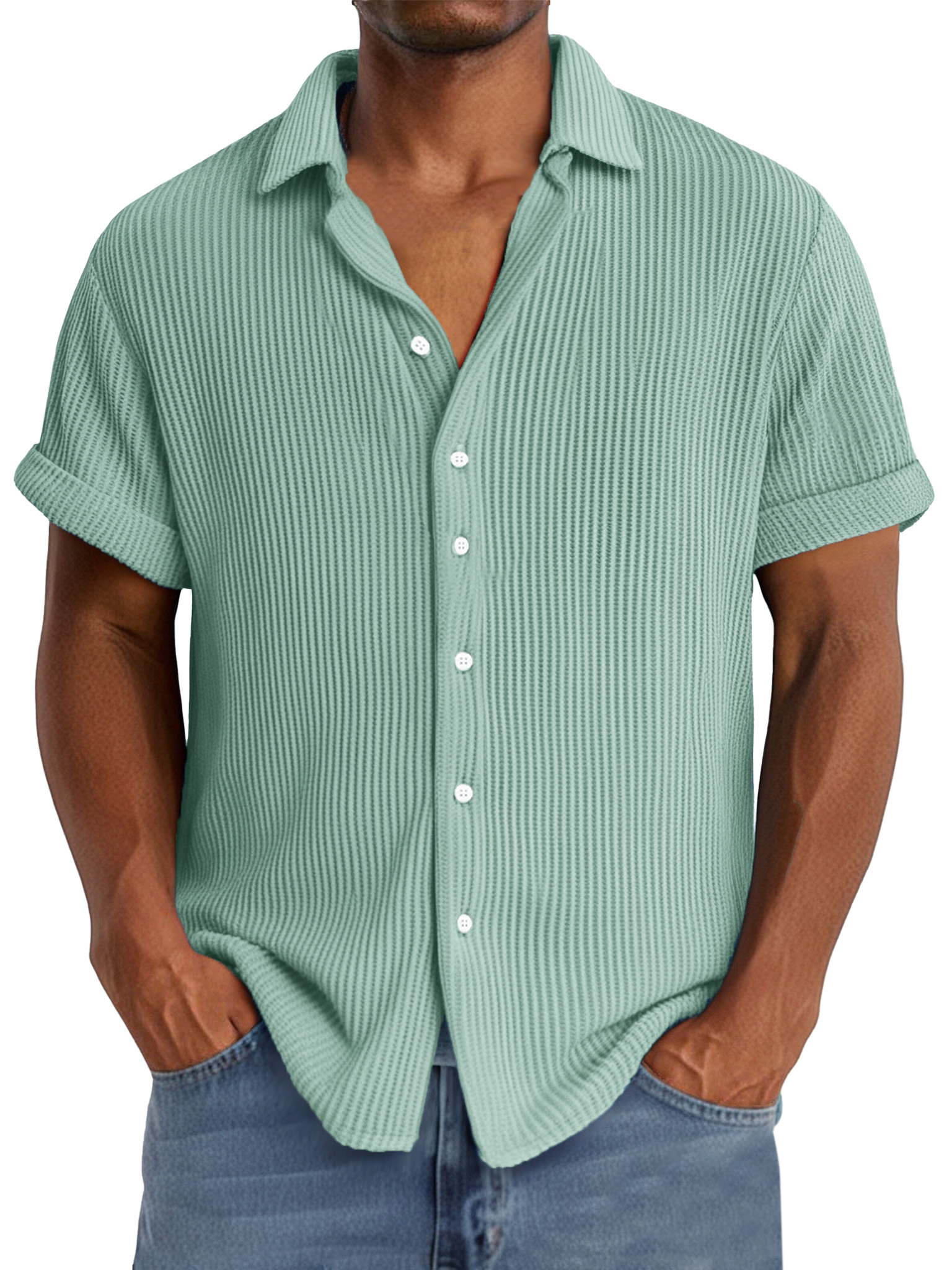 Men's summer casual simple waffle texture short-sleeved shirt$39.99 USD -