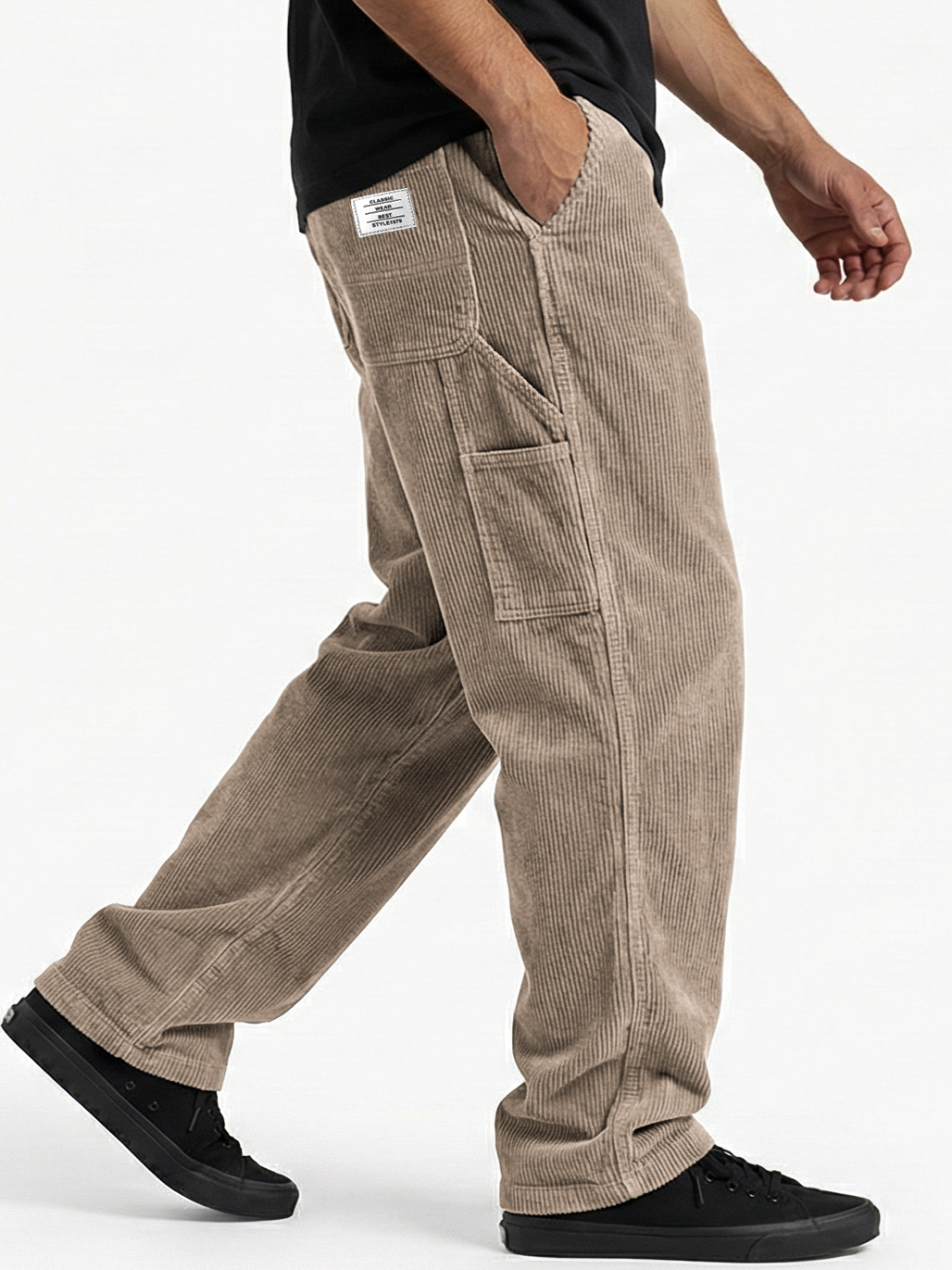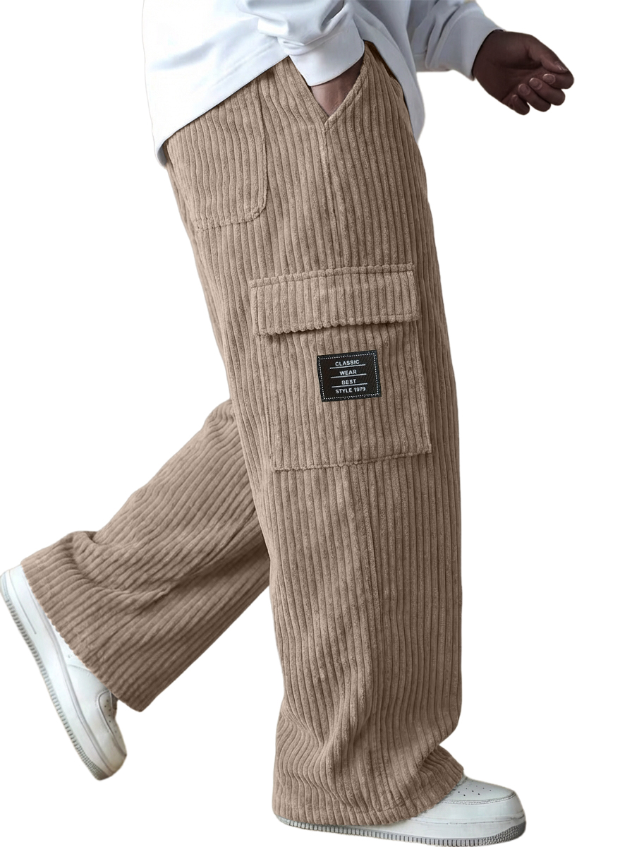 Men's Vintage Comfort Practical Workwear Corduroy Trousers with Multiple Pockets and Embroidered Label$42.99 USD -