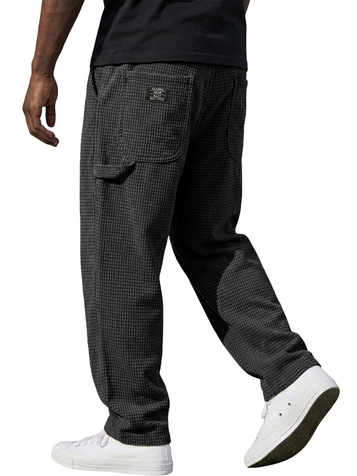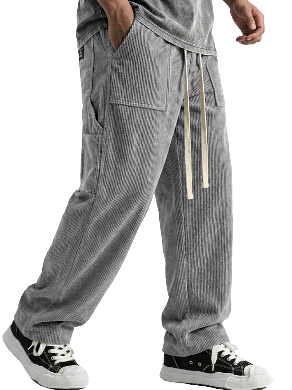 Corduroy Waffle Trousers with Multiple Pockets and Embroidered Tags$42.99 USD -