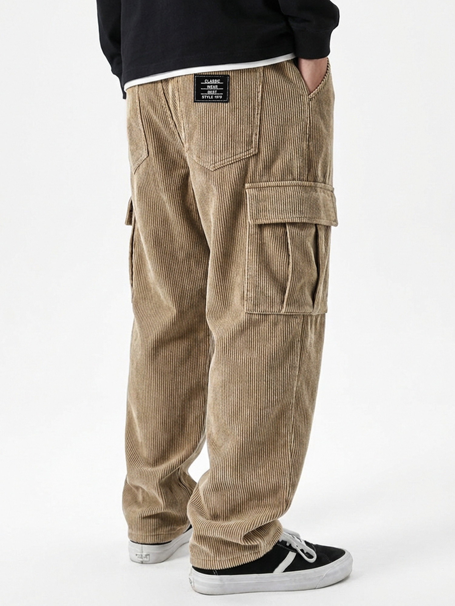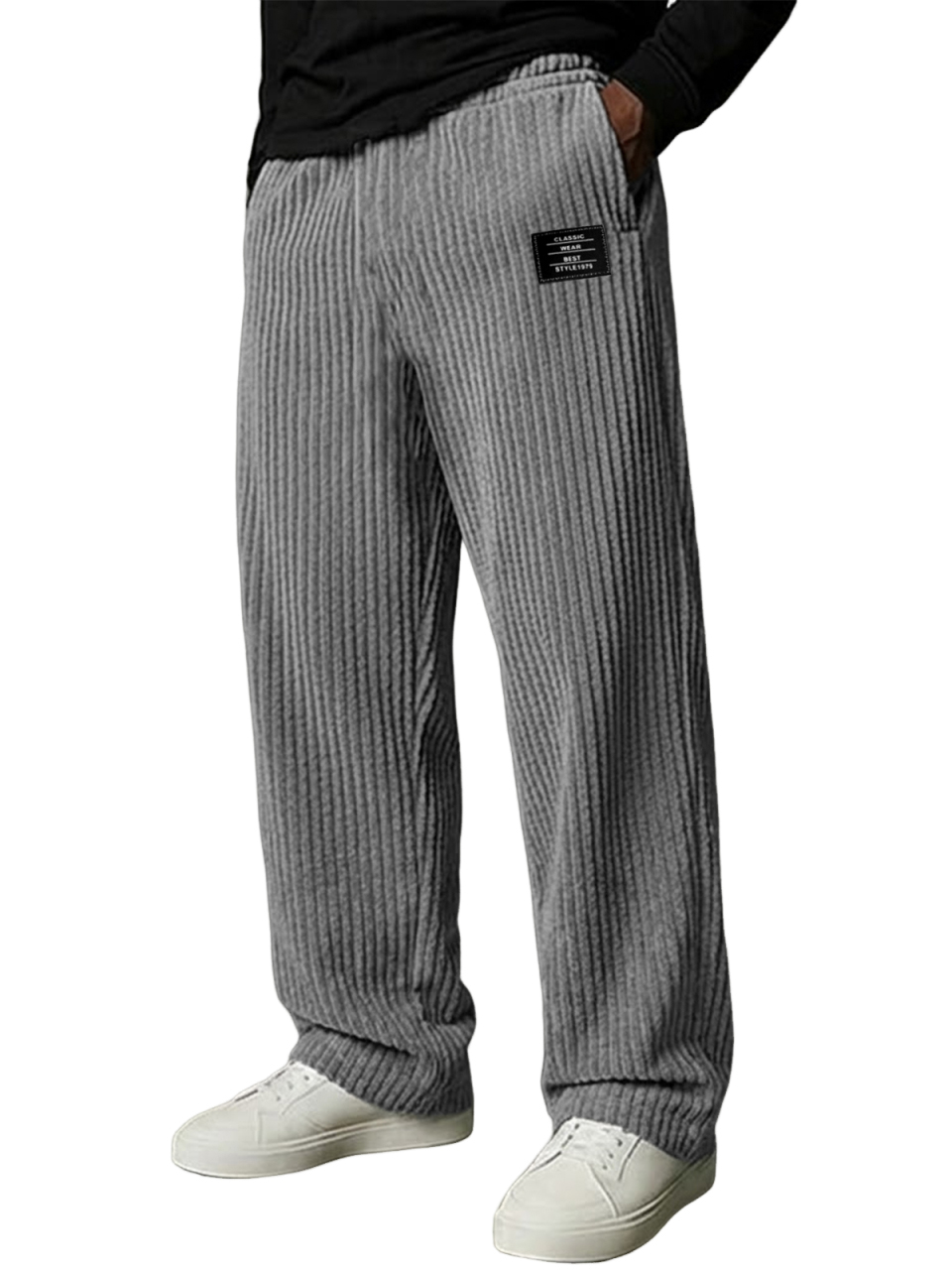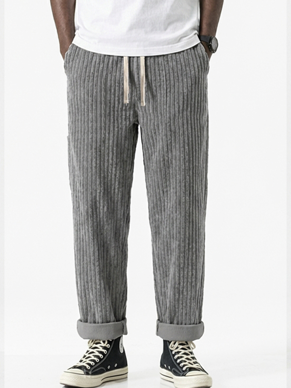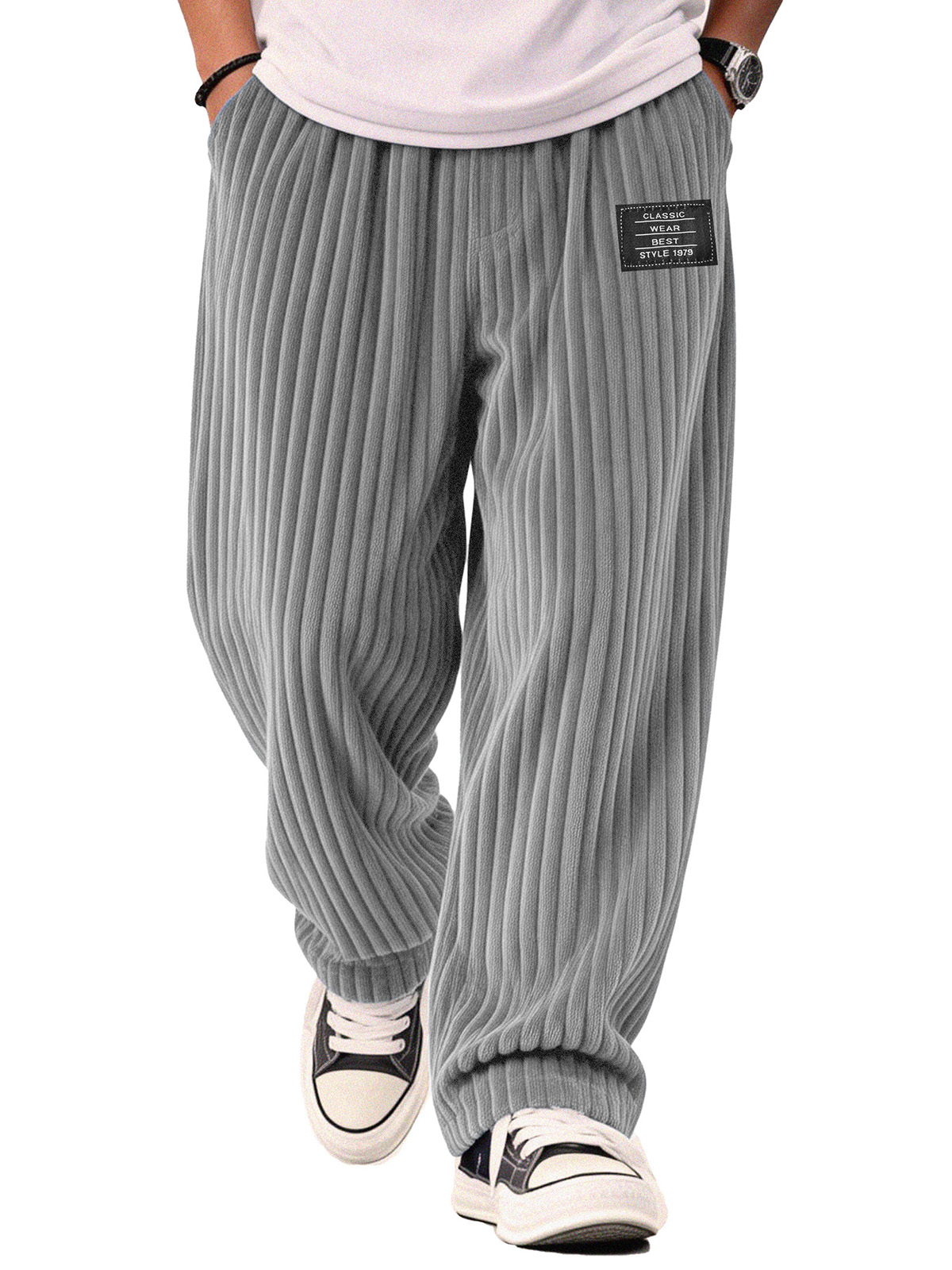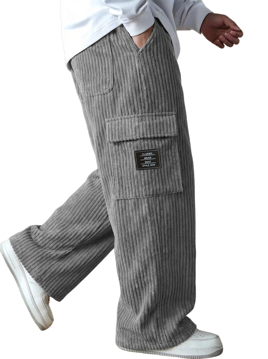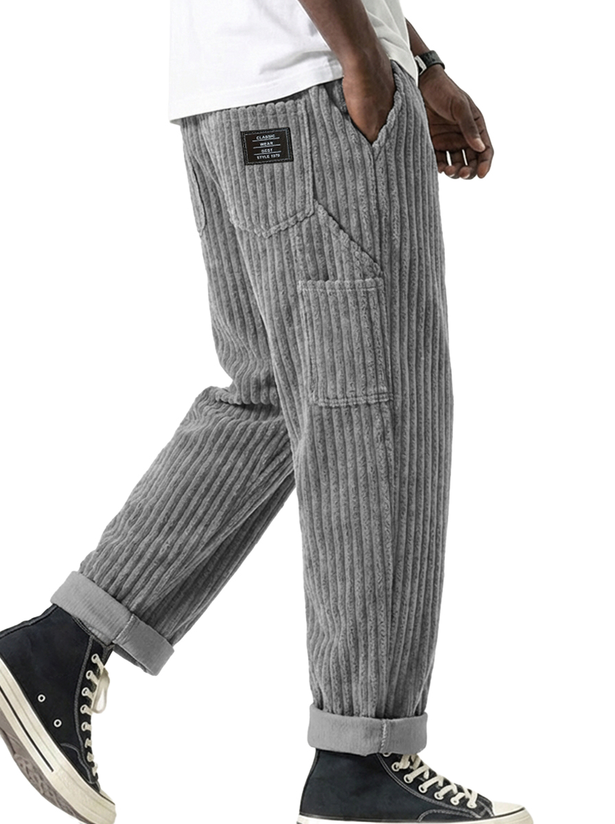 Men's Stylish Vertical Striped Corduroy Trousers with Embroidered Label$42.99 USD -
