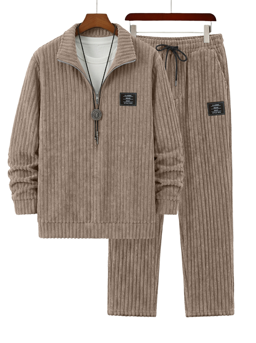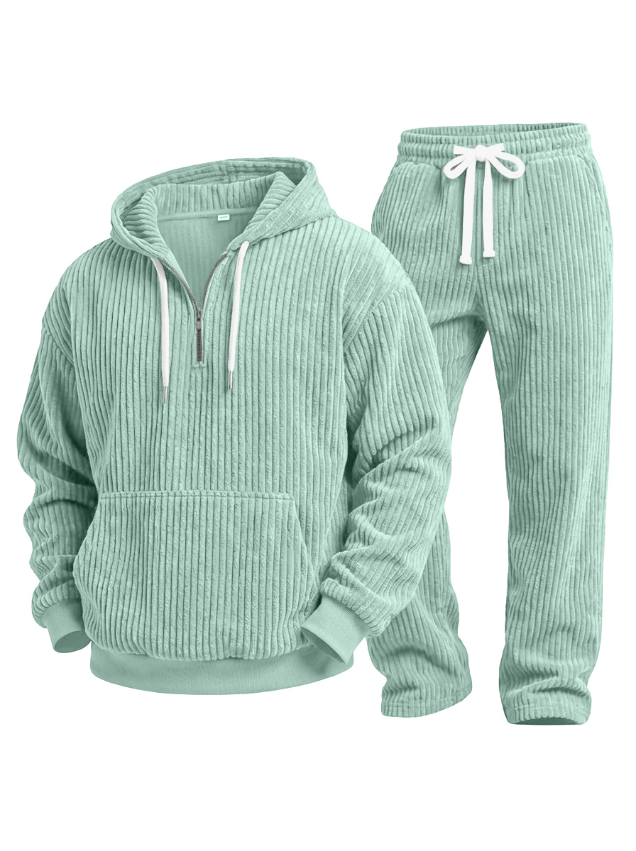Men's Vintage Corduroy Quarter-Zip Sweatshirt and Pants Set OOTD$69.99 USD -