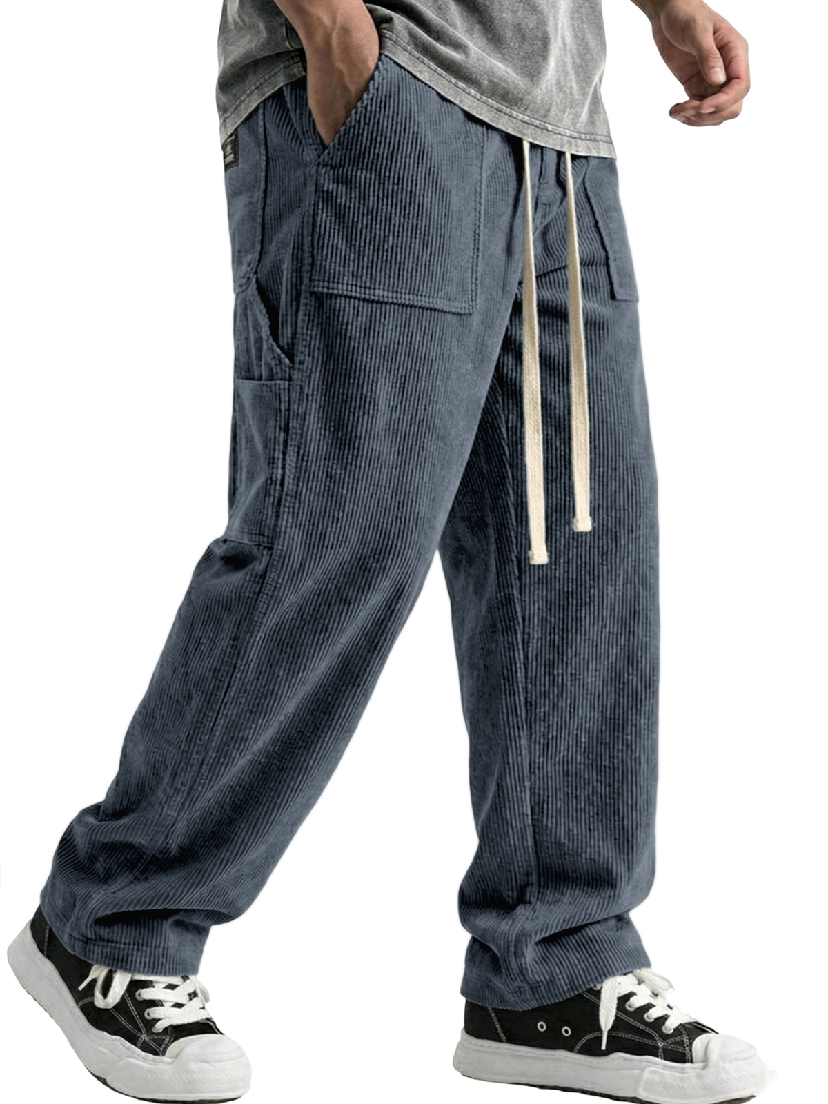 Stylish Casual Loose Corduroy Fabric Pocket Tether Pants$42.99 USD -