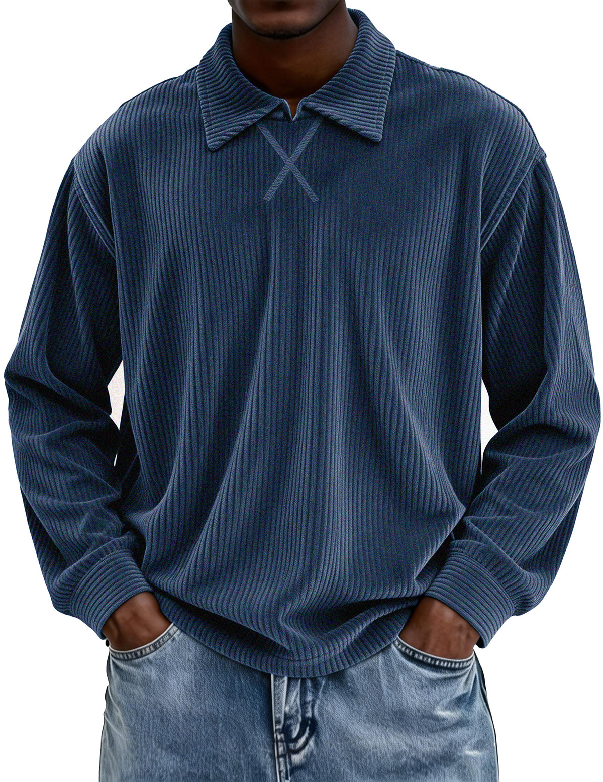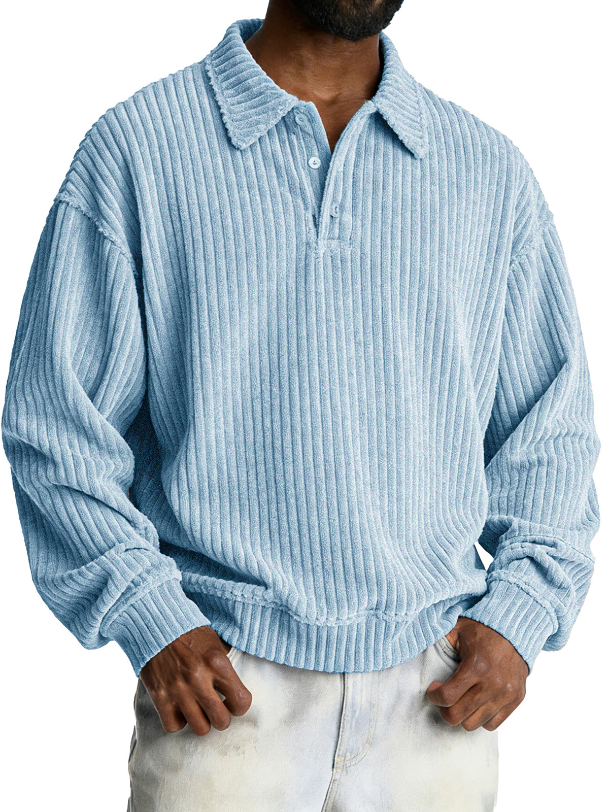 Stylish Casual Loose Corduroy Fabric Lapel Long-sleeved Polo Shirt$42.99 USD -
