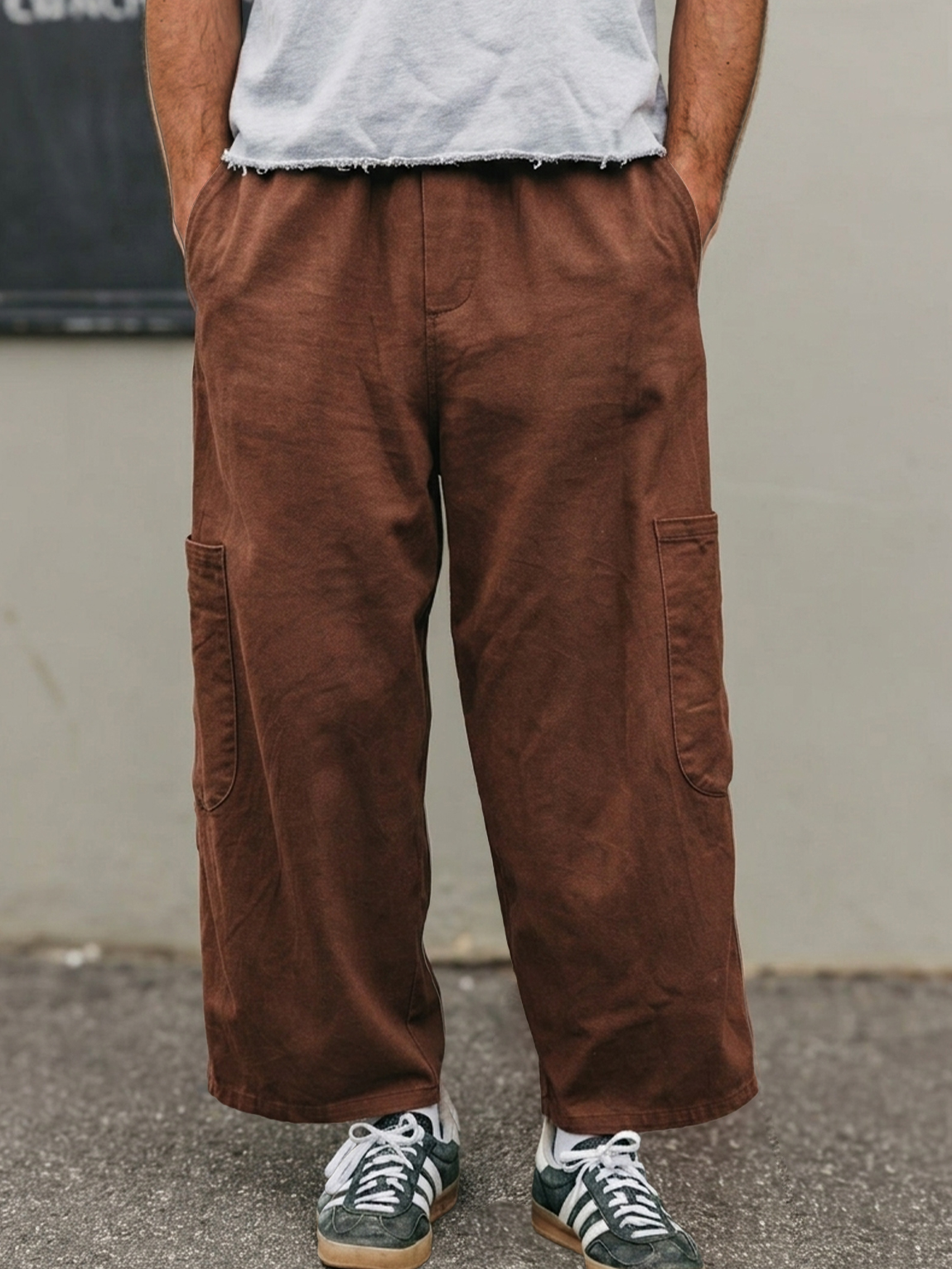Stylish Casual Loose Waffle Fabric Pocket Tether Pants$42.99 USD -