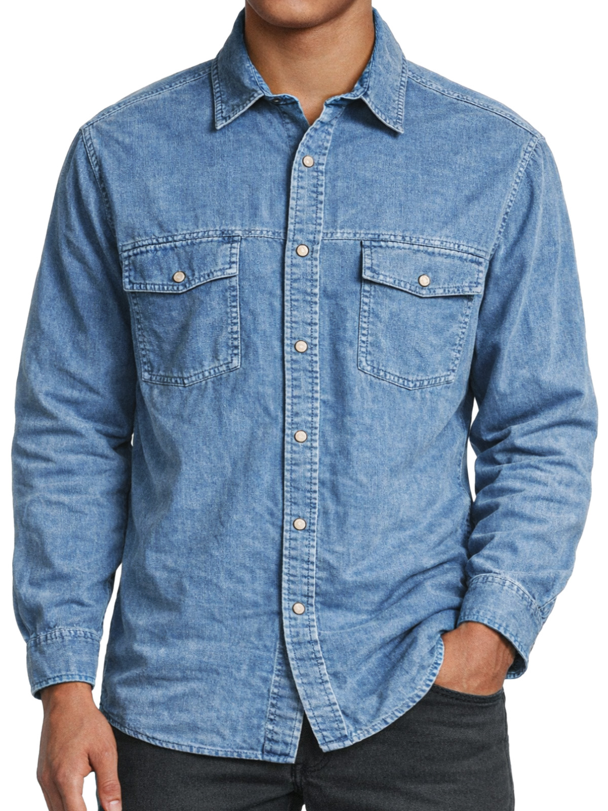 Men's Retro Double-pocket Collared Long-sleeved Shirt$42.99 USD -