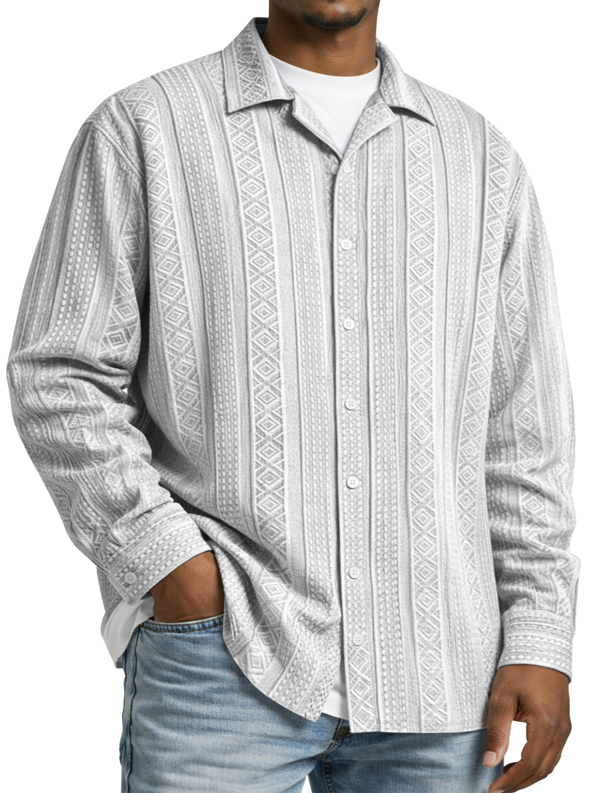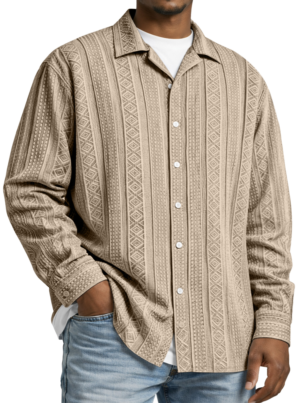 Men's Simple Solid Color Textured Long-sleeved Collared Shirt$42.99 USD -