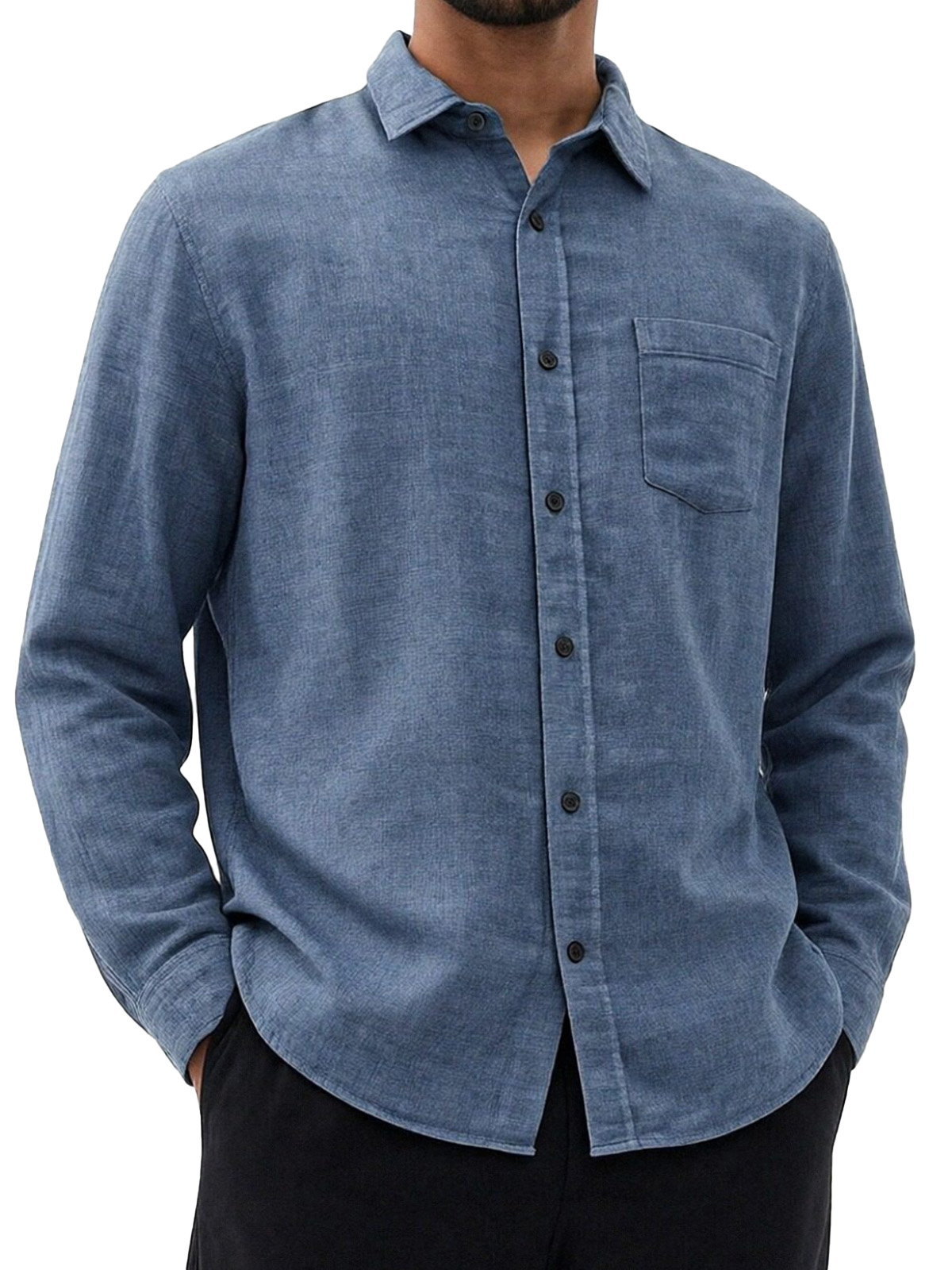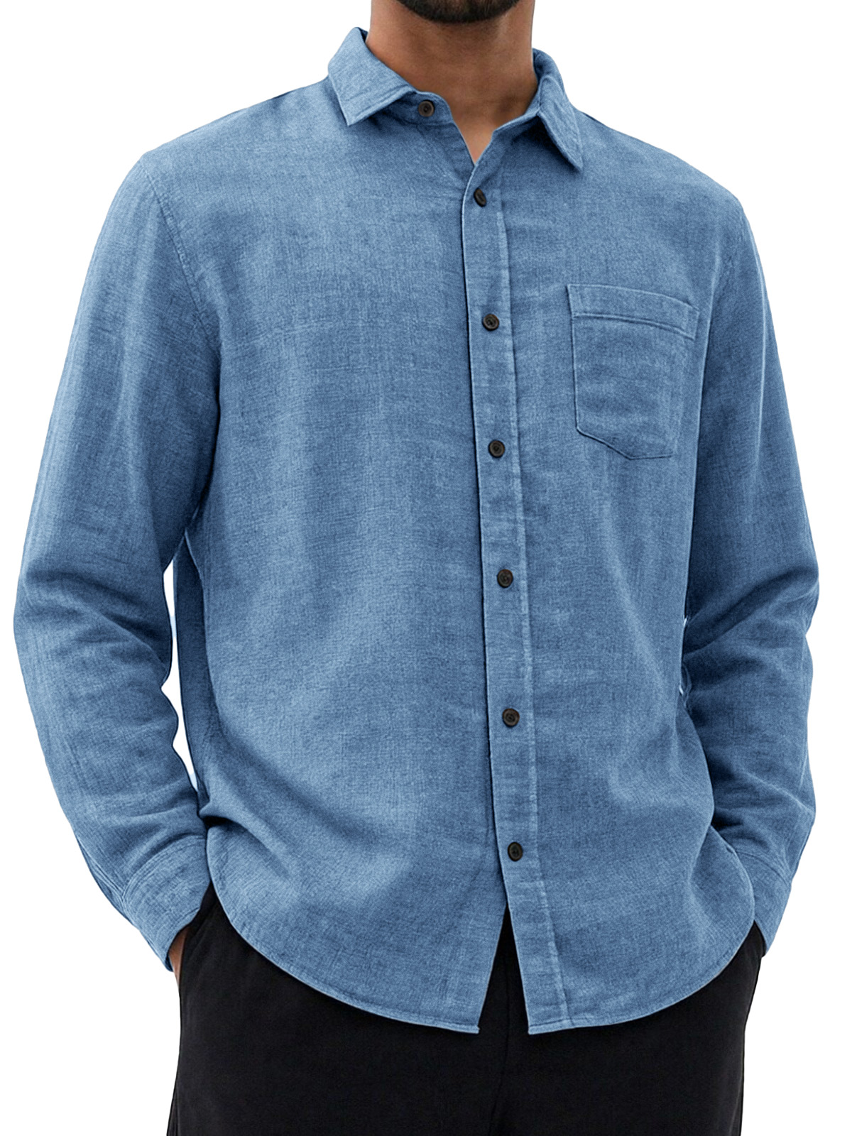 Men's Retro Simple And Versatile Solid Color Collared Long-sleeved Shirt$42.99 USD -