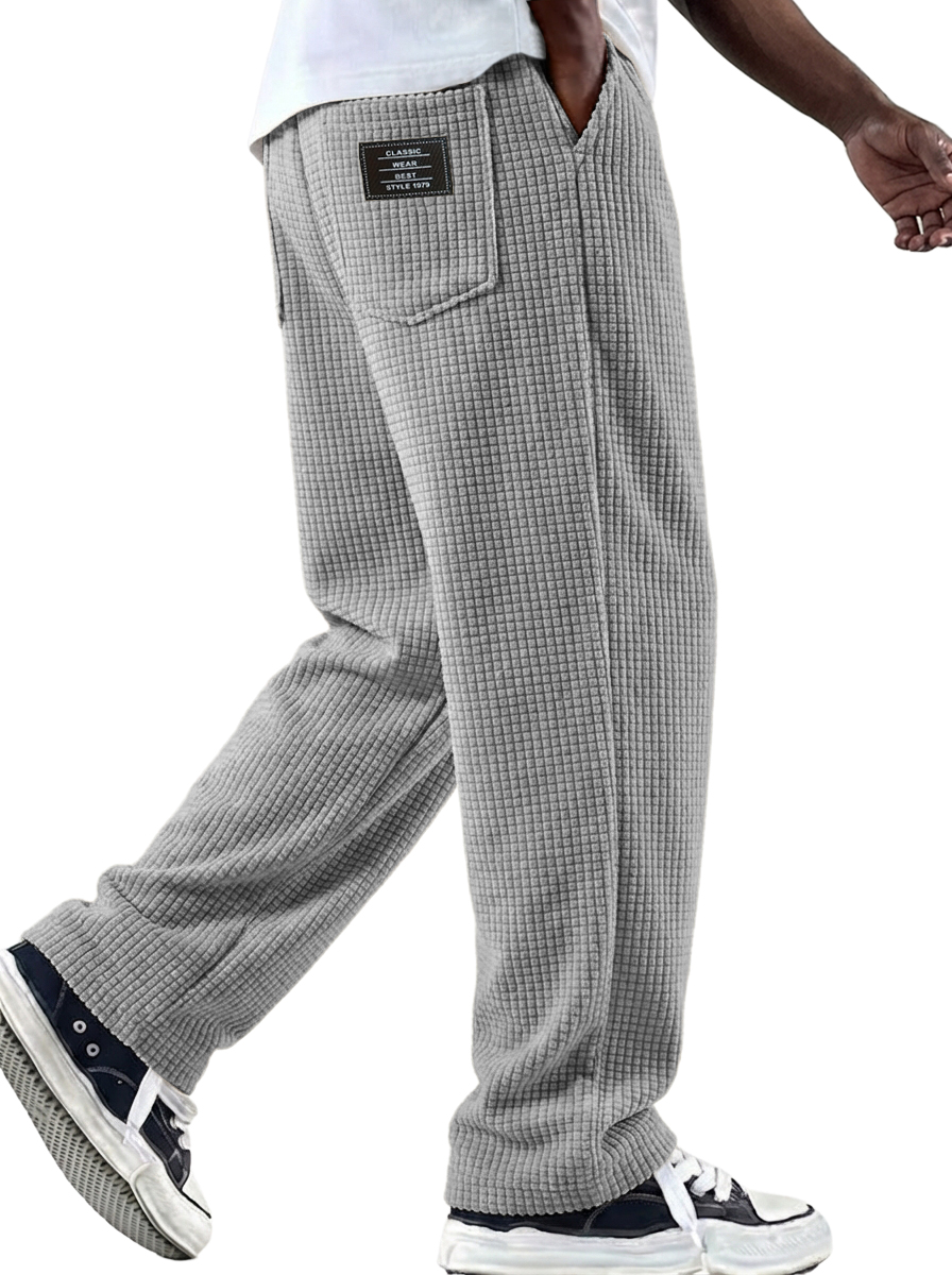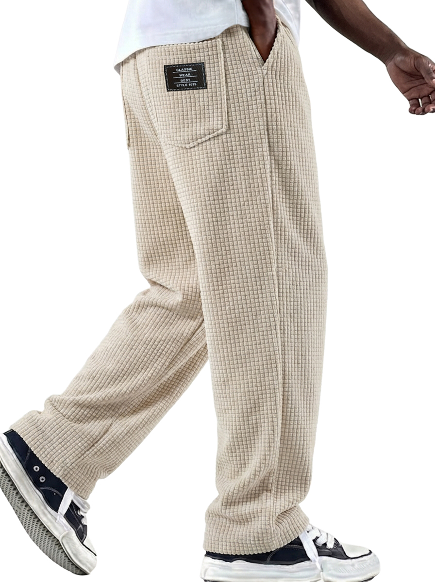 Men's Waffle Textured Pants with Decorative Stitching and Embroidered Label$42.99 USD -