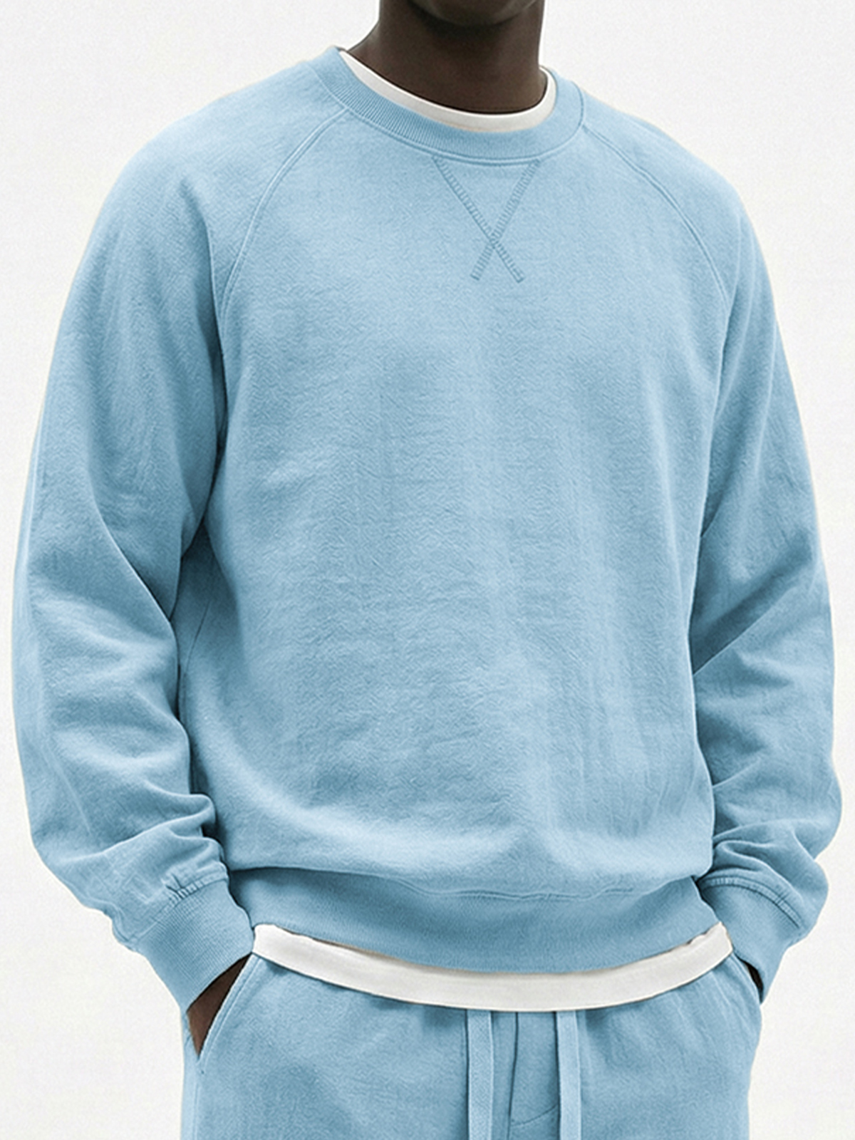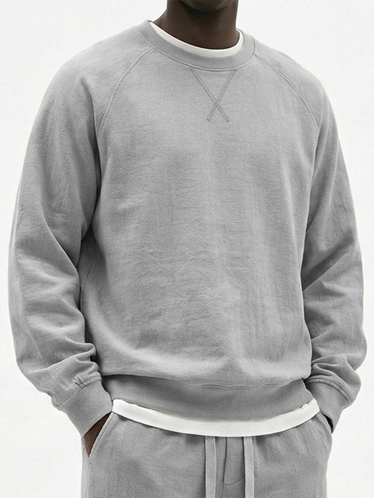 Men's Comfortable Crew Neck Long-sleeved T-shirt With A Crossover Design$42.99 USD -