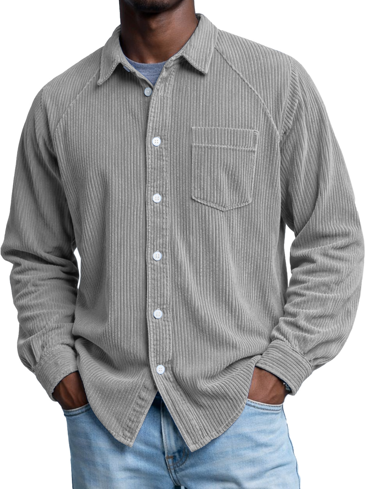 Men's Retro Corduroy Raglan Long-Sleeve Lapel Shirt$42.99 USD -