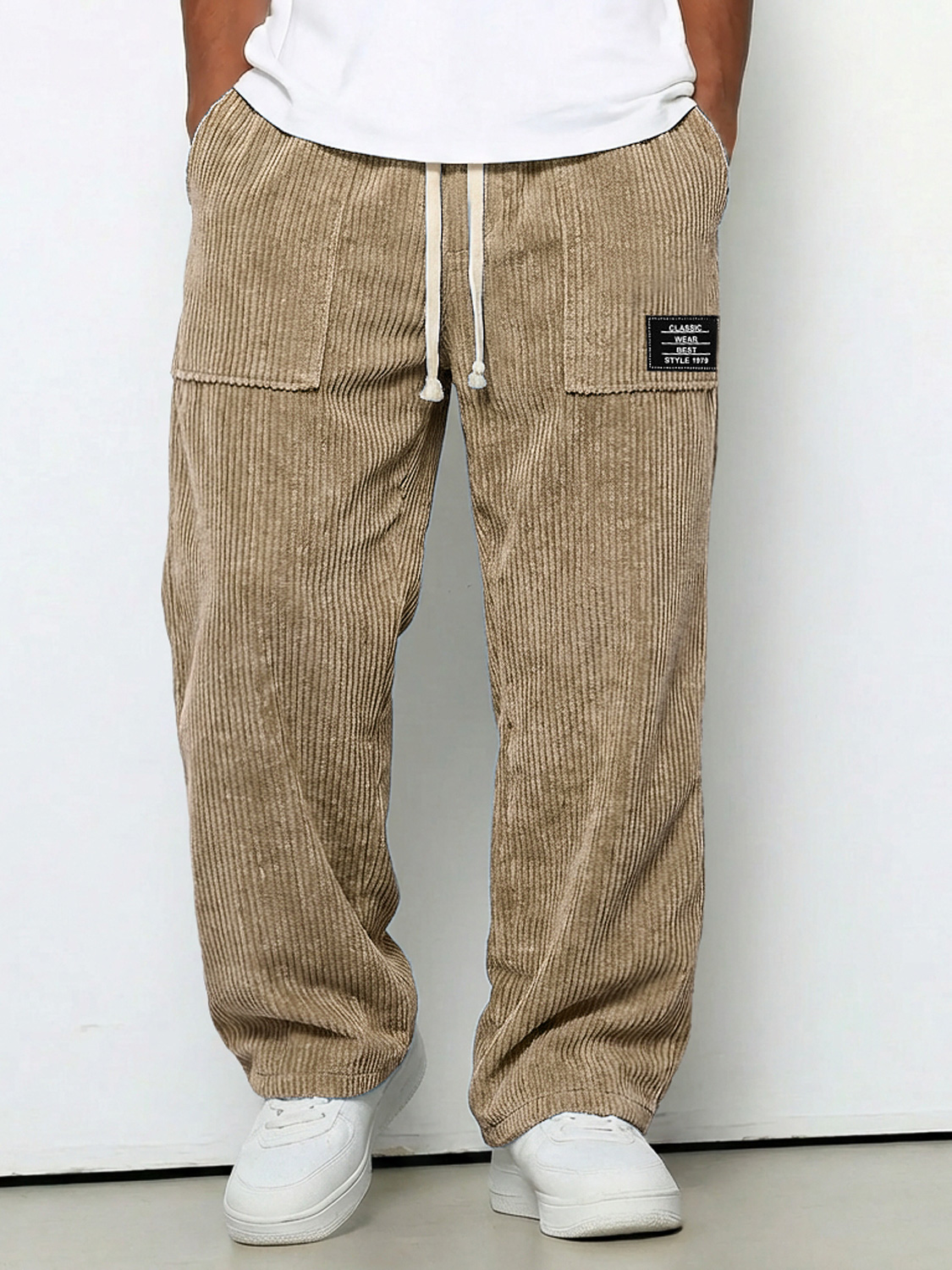 Men's Stylish Corduroy Pants with Embroidered Labels and Patch Pockets$42.99 USD -