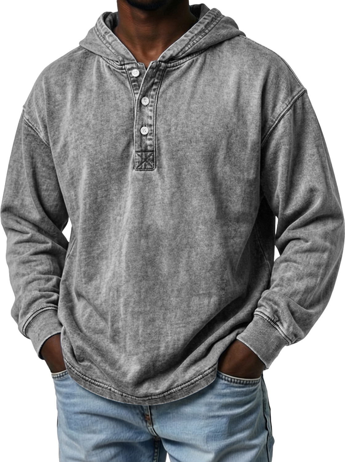 Men's Vintage Button-up Casual Long-sleeved Hooded Top$43.99 USD -