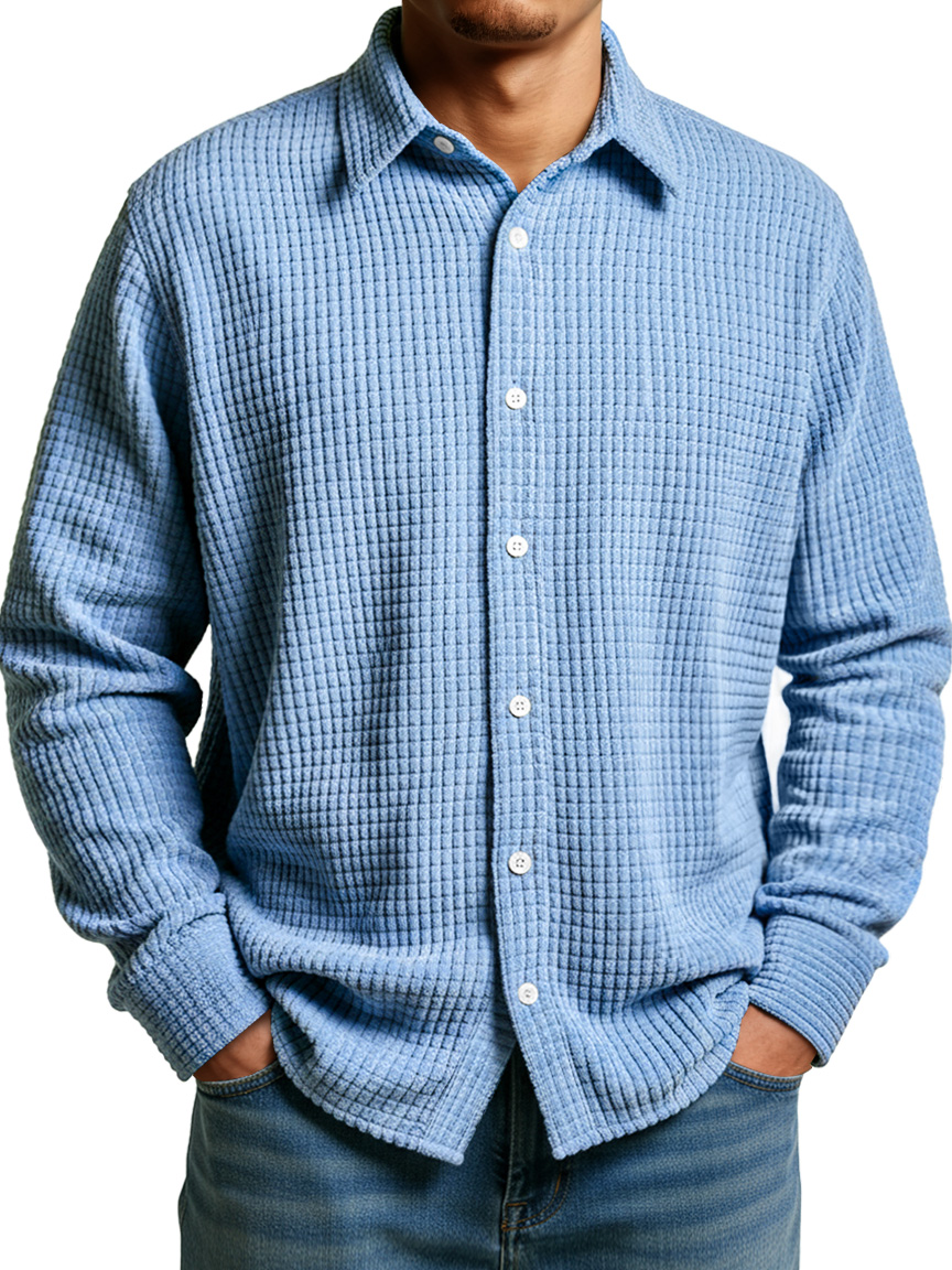 Basic Vintage Corduroy Lapel Button-down Long-sleeve Shirt$44.99 USD -