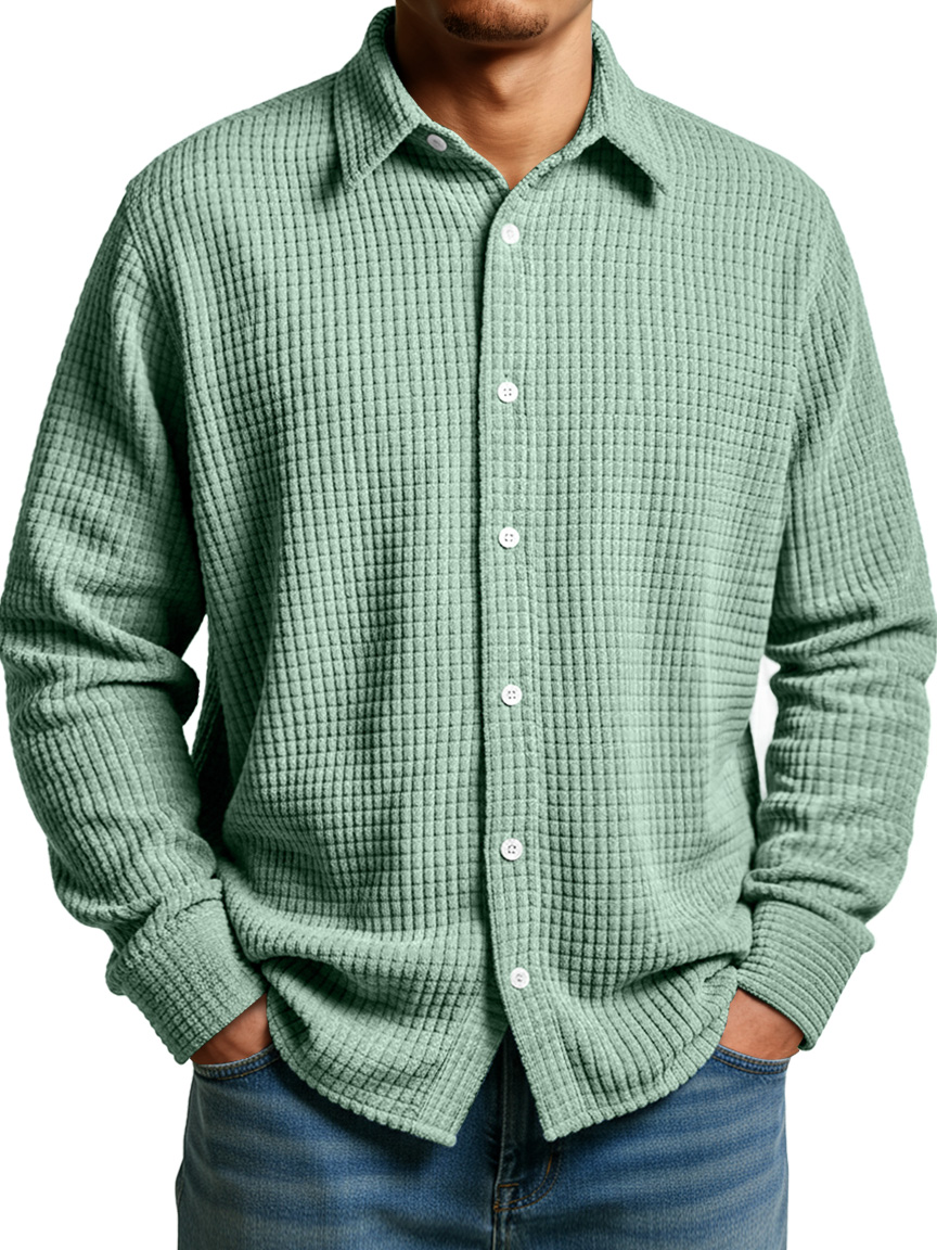 Men's Casual Solid Color Waffle Long Sleeve Hooded Coat$46.99 USD -