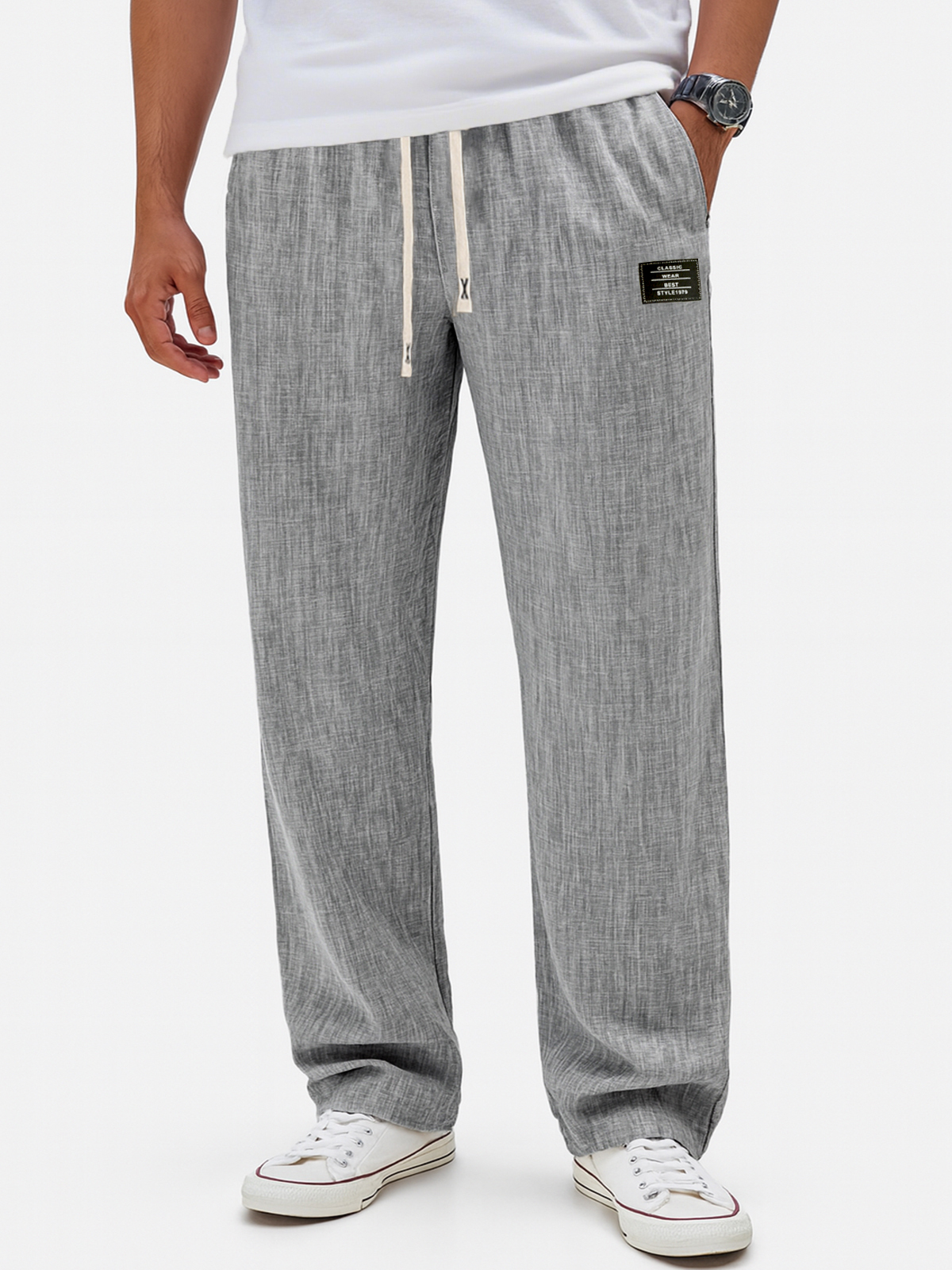 Men's Breathable Linen Crinkled Casual Drawstring Comfort Pants with Embroidered Labels$42.99 USD -