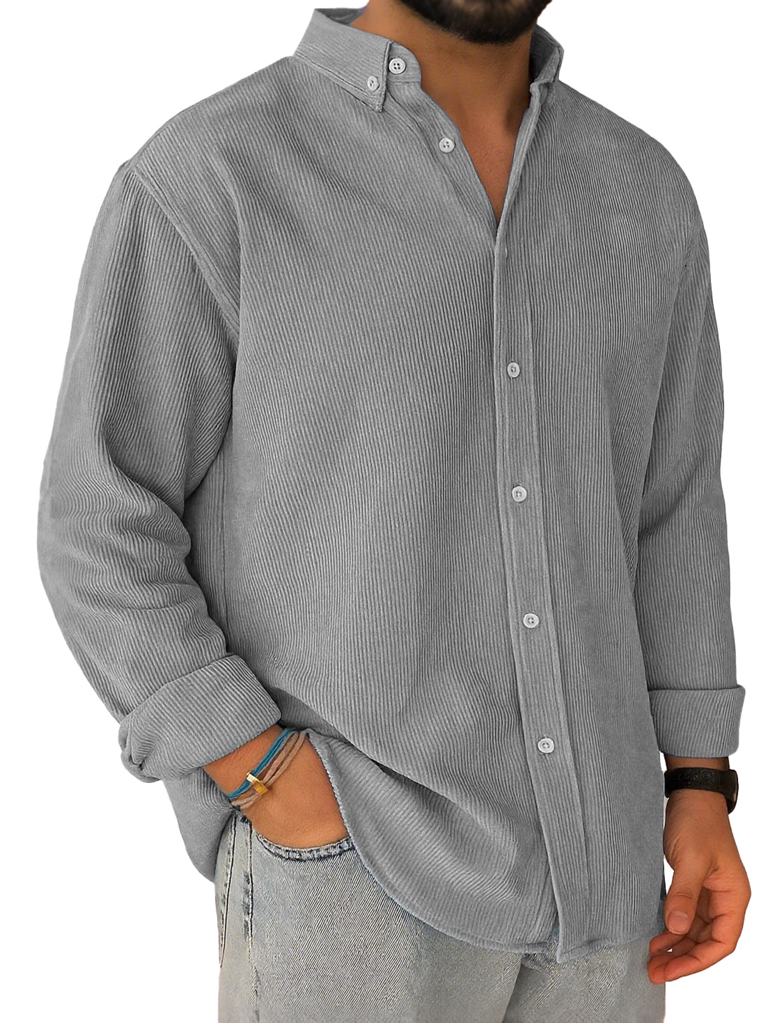 Men's Casual Corduroy Loose-fitting Long-sleeved Lapel Shirt$42.99 USD -