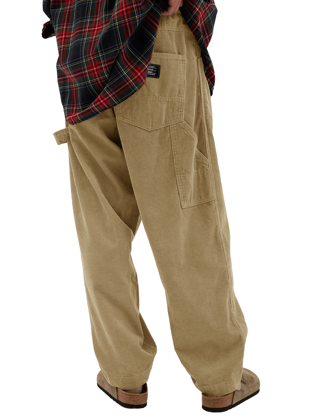 Men's Vintage Carpenter Corduroy Stylish Casual Cargo Pants with Multi-pocket and Embroidered Labe$42.99 USD -