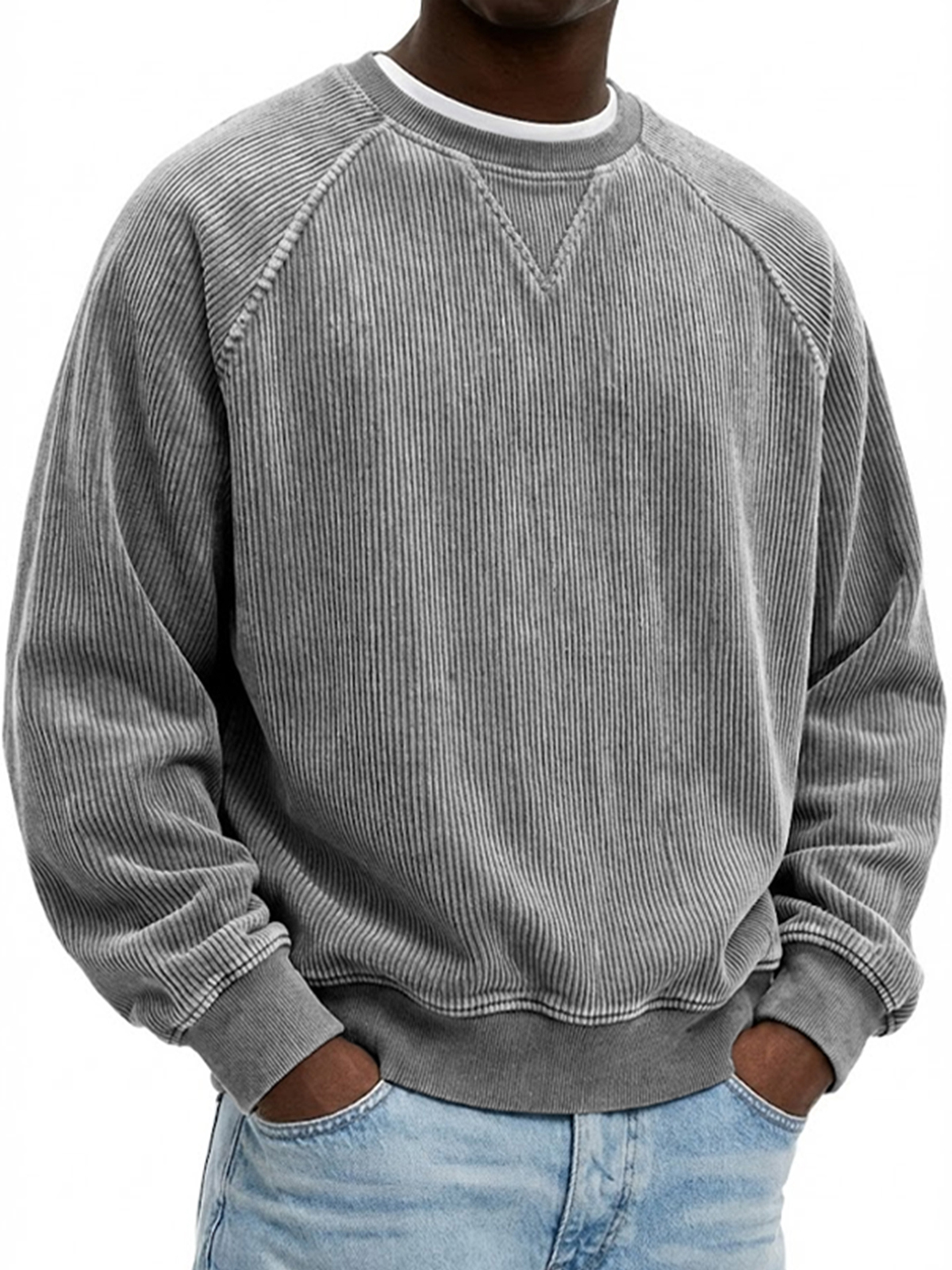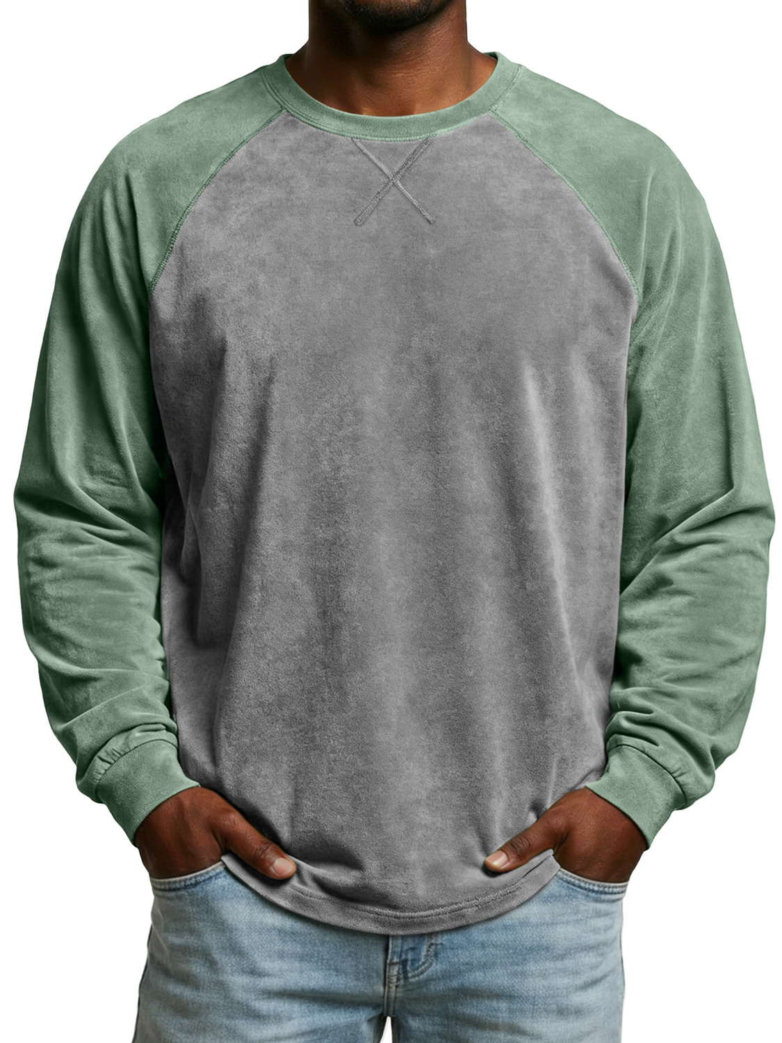 Men's Vintage Corduroy Patchwork Raglan Sleeve Pullover Sweatshirt Top$42.99 USD