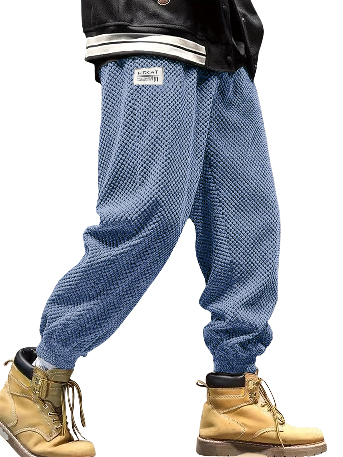 Men's Waffle-knit Casual Loose-fitting Trousers With Embroidered Logo$42.99 USD -
