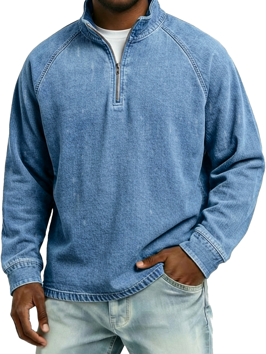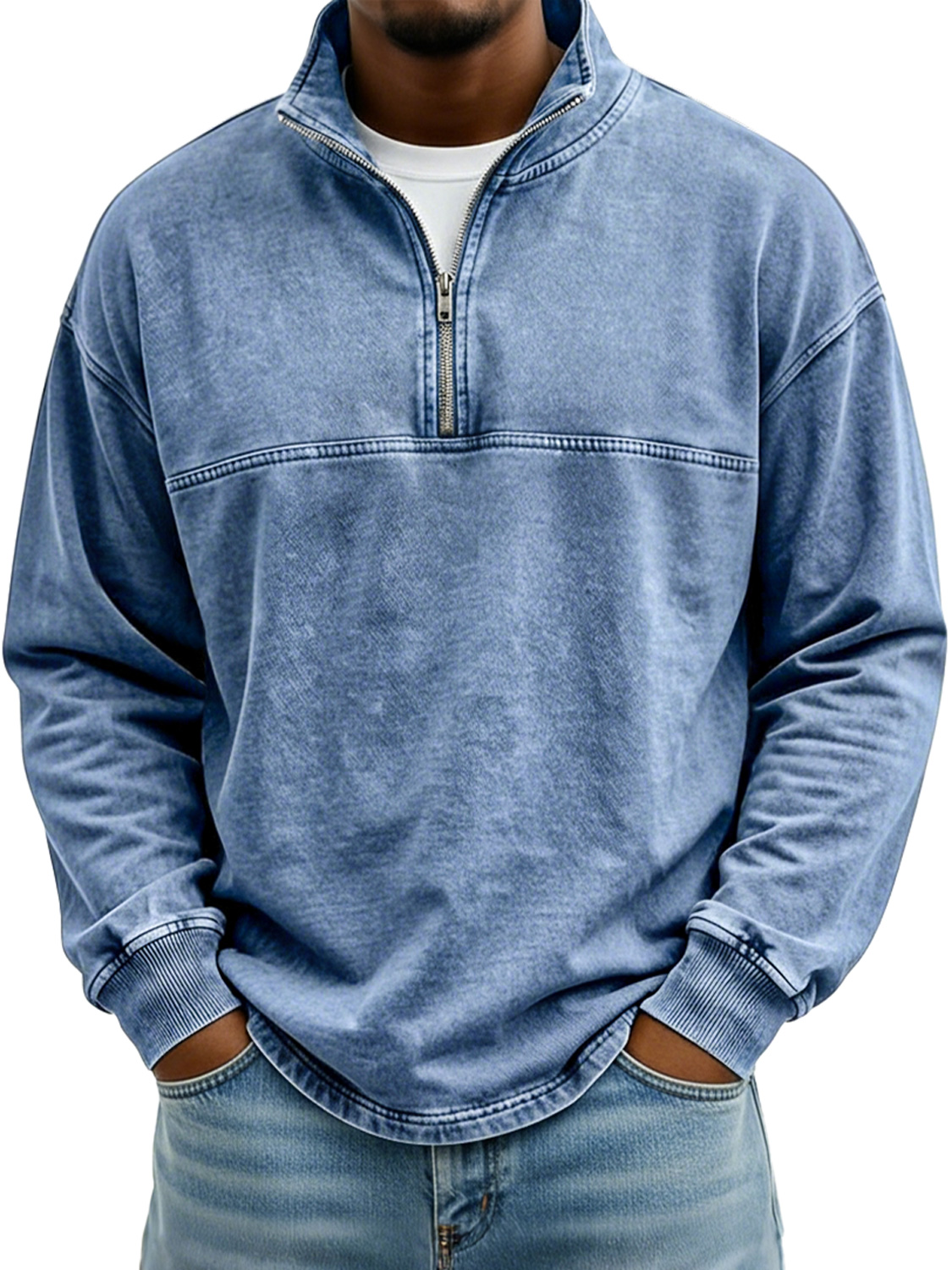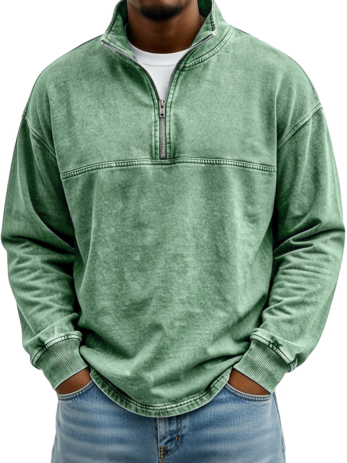 Men's Vintage Raglan Sleeve Stand-collar Zip-up Casual Long-sleeved T-shirt$42.99 USD -