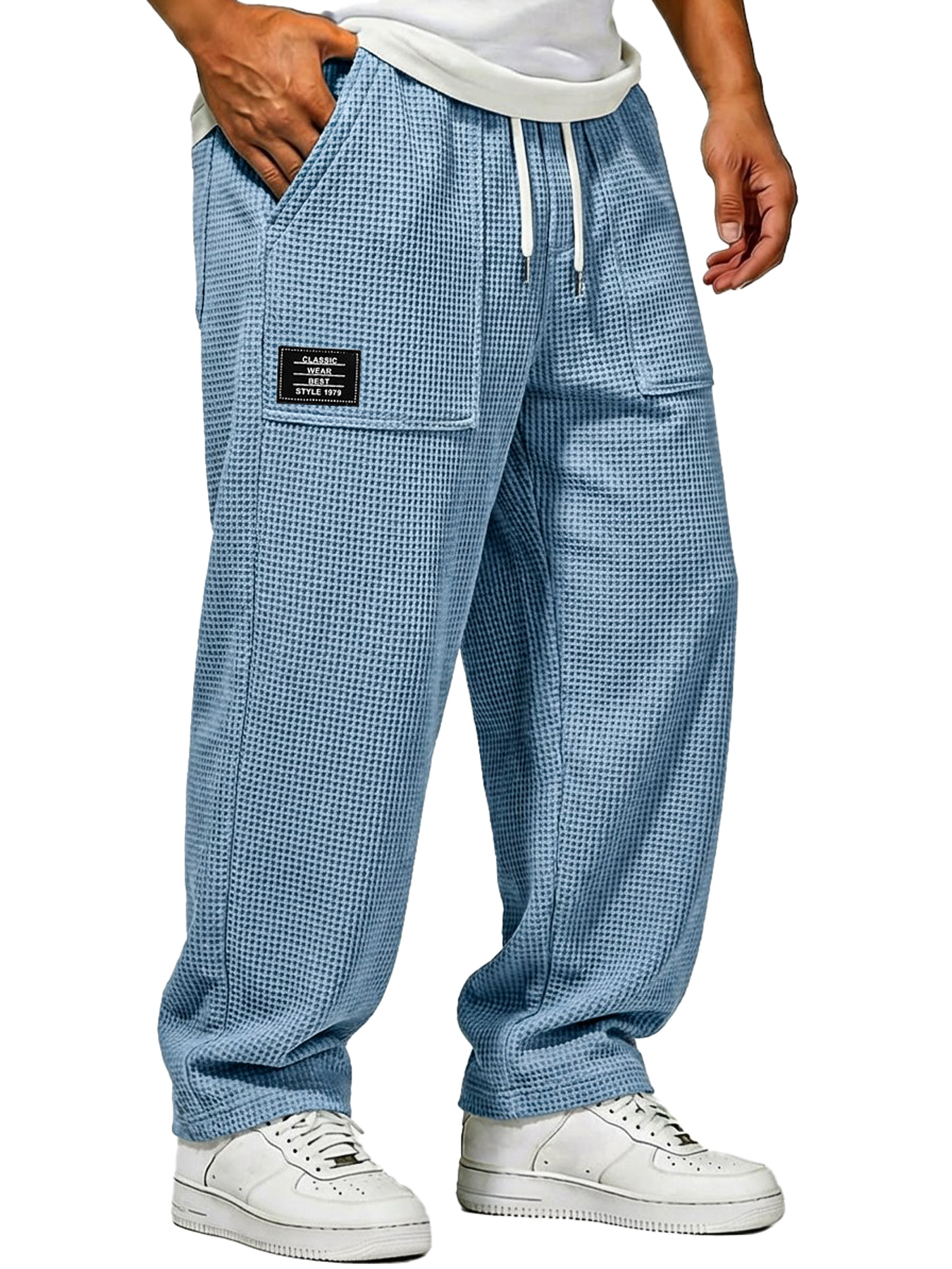 Men's Waffle-knit Casual Loose-fitting Trousers With Patch Pockets And Embroidered Logo$42.99 USD -