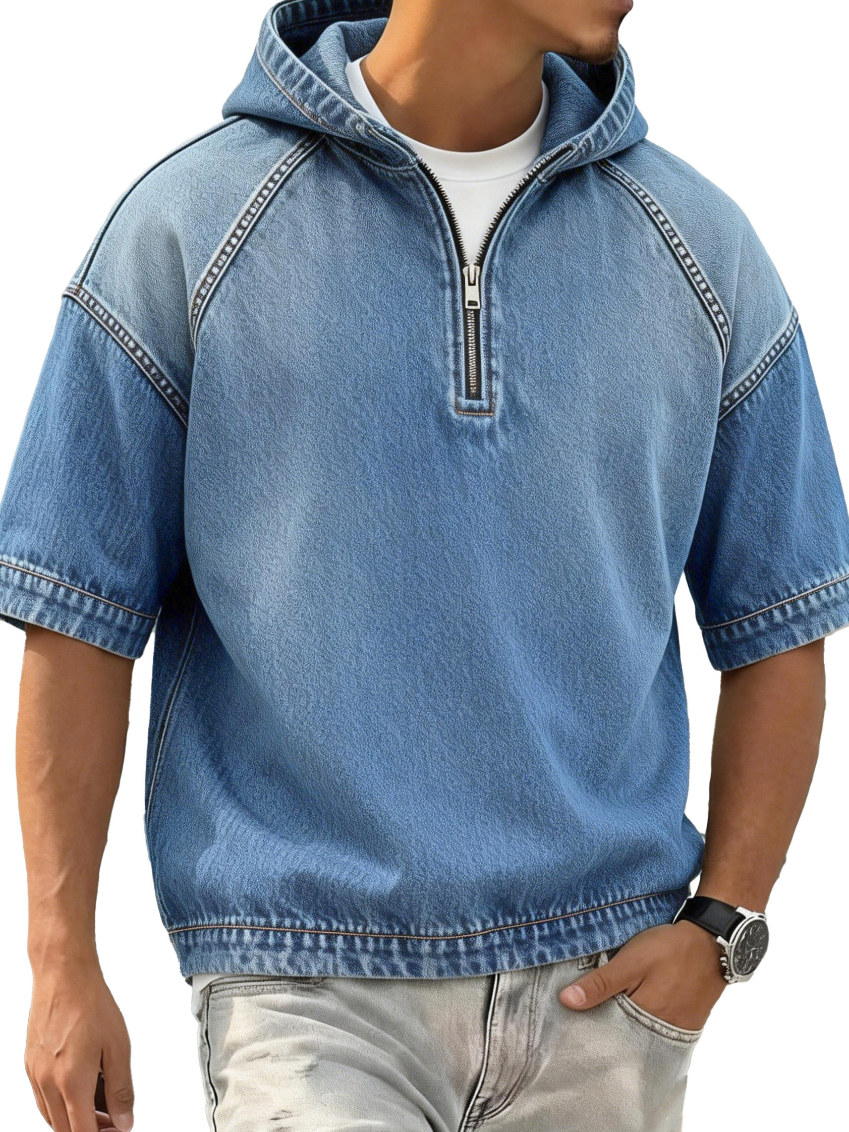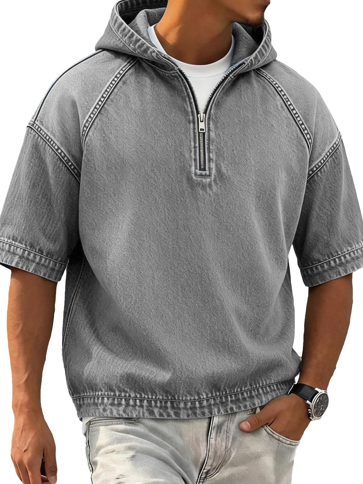 Men's Retro Distressed Raglan Short-Sleeve Sporty Hoodie$38.99 USD -