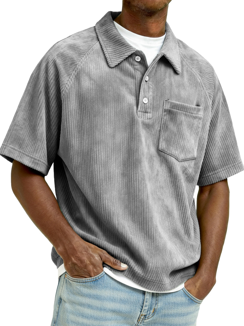 Men's Retro Raglan Corduroy Loose Pocket Short-Sleeve Polo Shirt$37.99 USD -