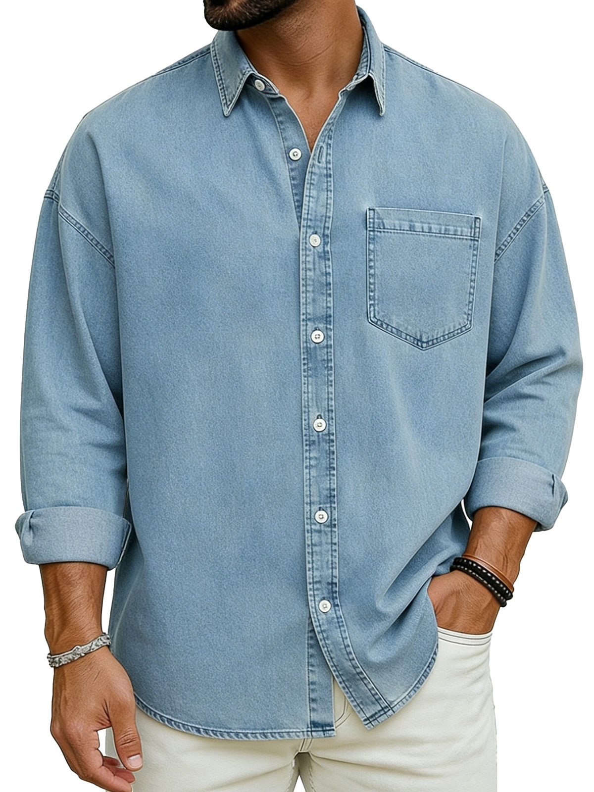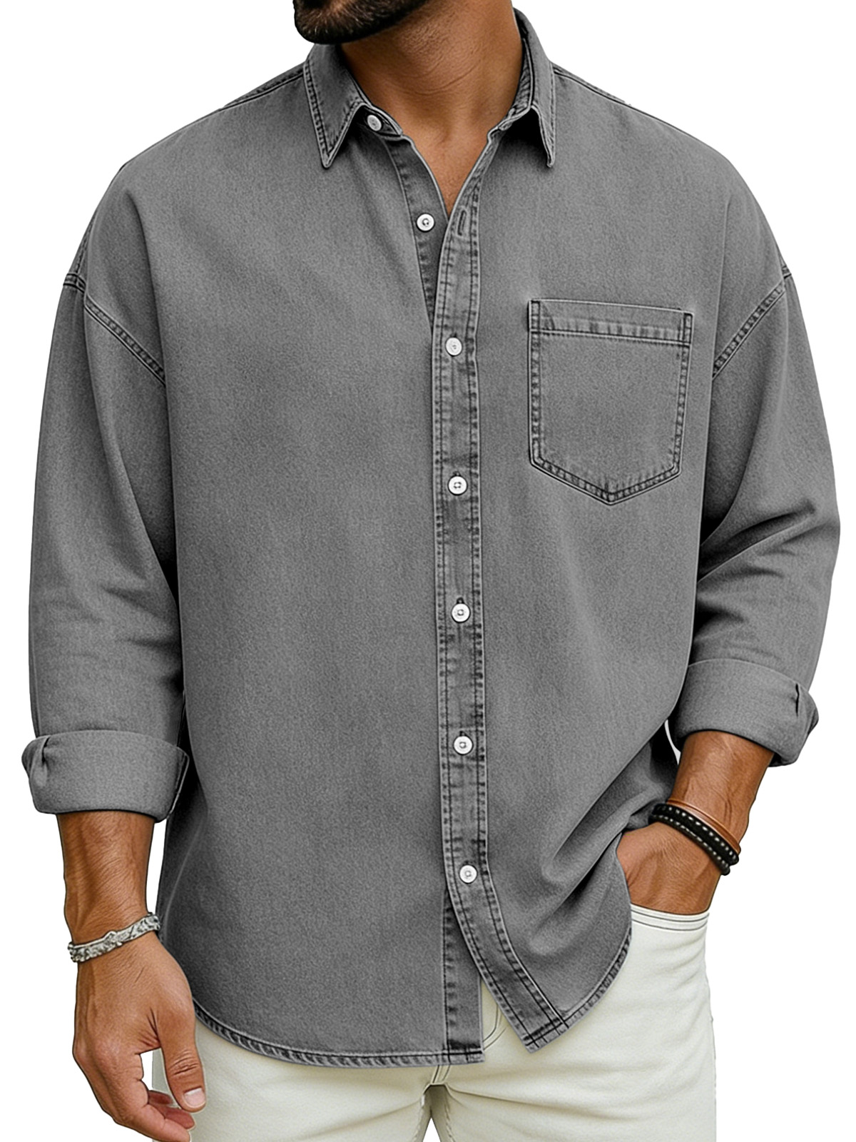 Men's Basic Solid Color Retro Lapel Button-down Long-sleeved Shirt$42.99 USD -