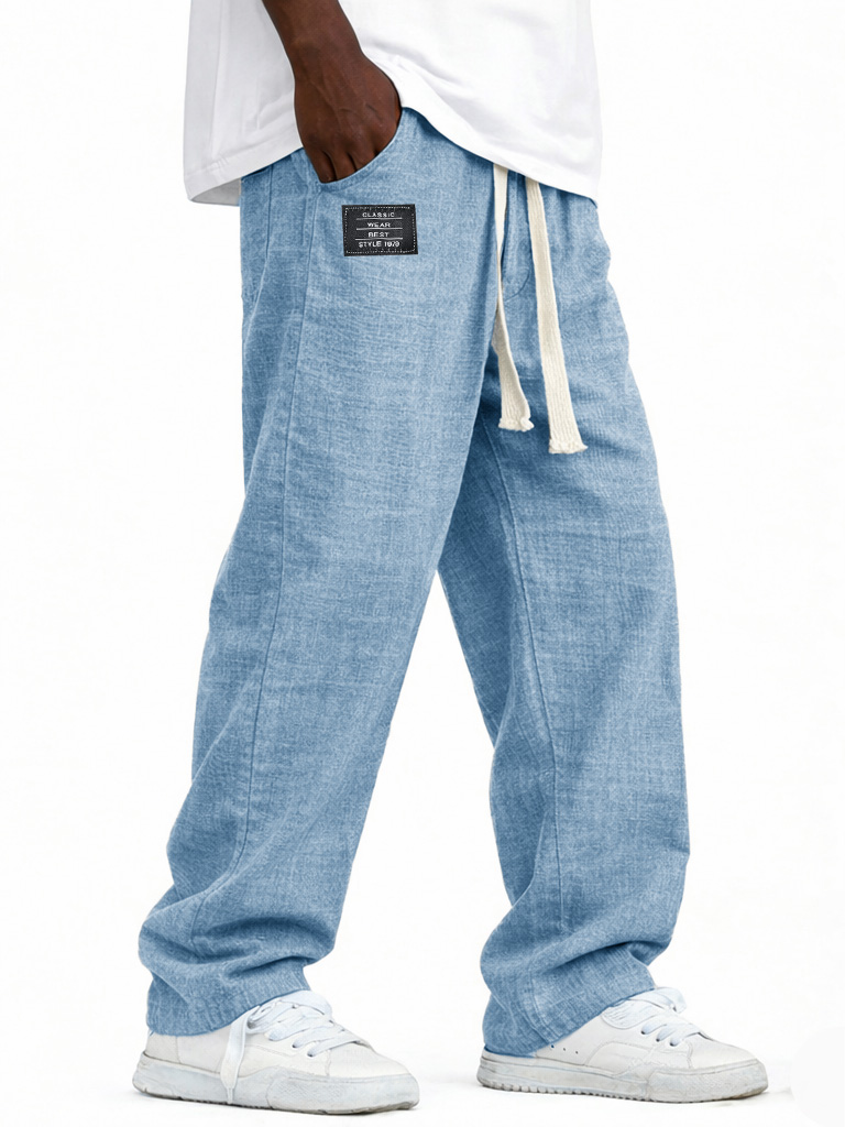 Loose-fitting Linen Wide-leg Beach Trousers with Embroidered Label$42.99 USD -