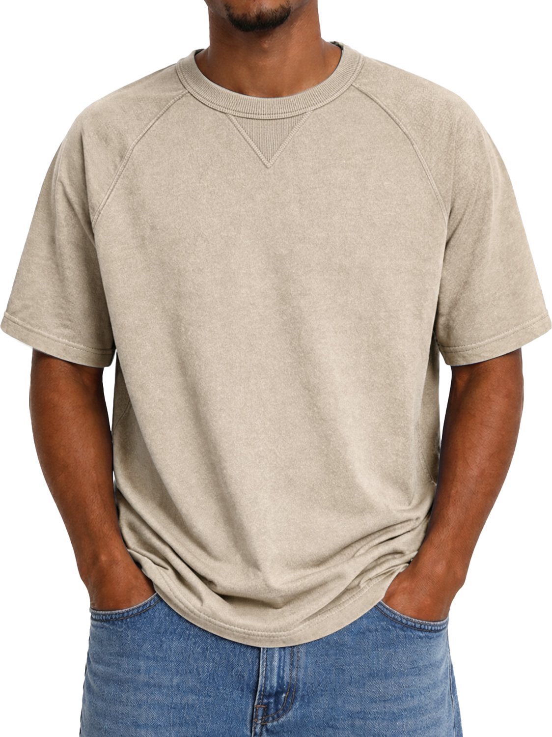 Men's Crew Neck Raglan Short-sleeved T-shirt With Inverted Triangle Design$37.99 USD -