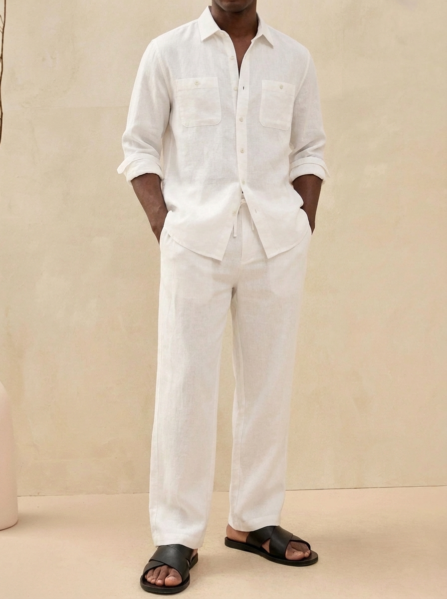 Men's Old Money Style Casual Cotton and Linen Shirt and Pants Set$60.00 USD -