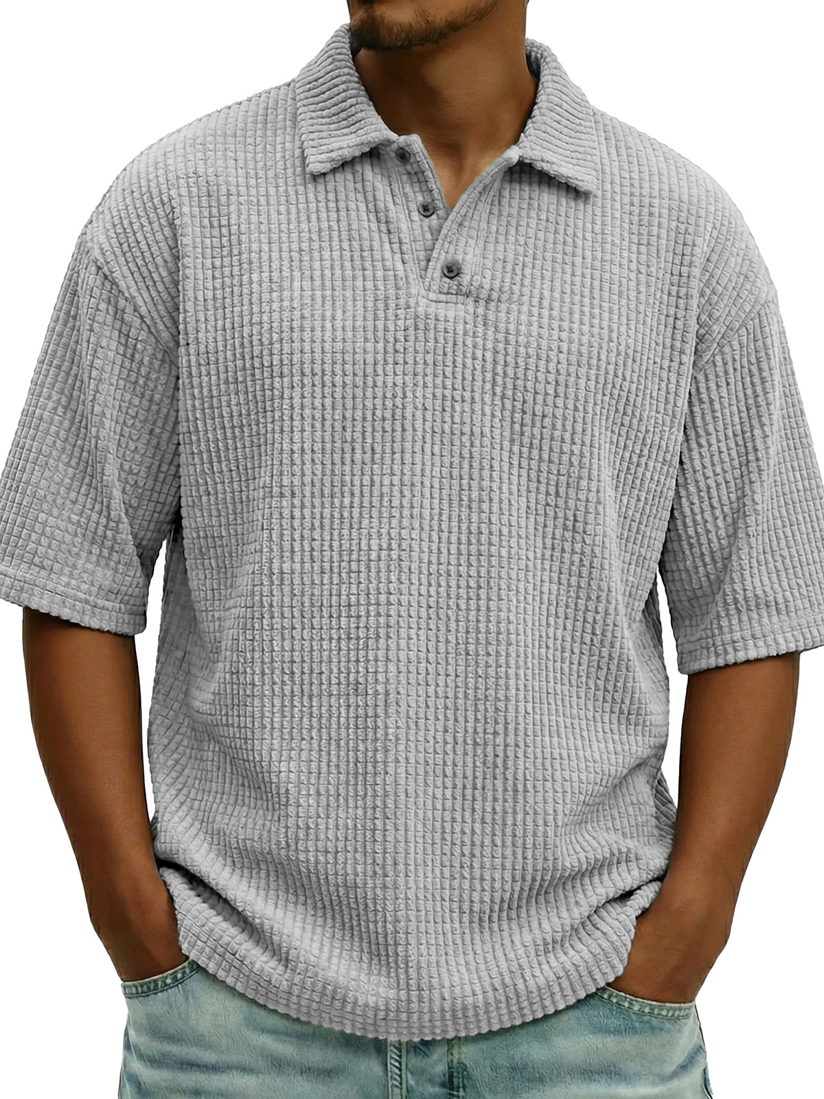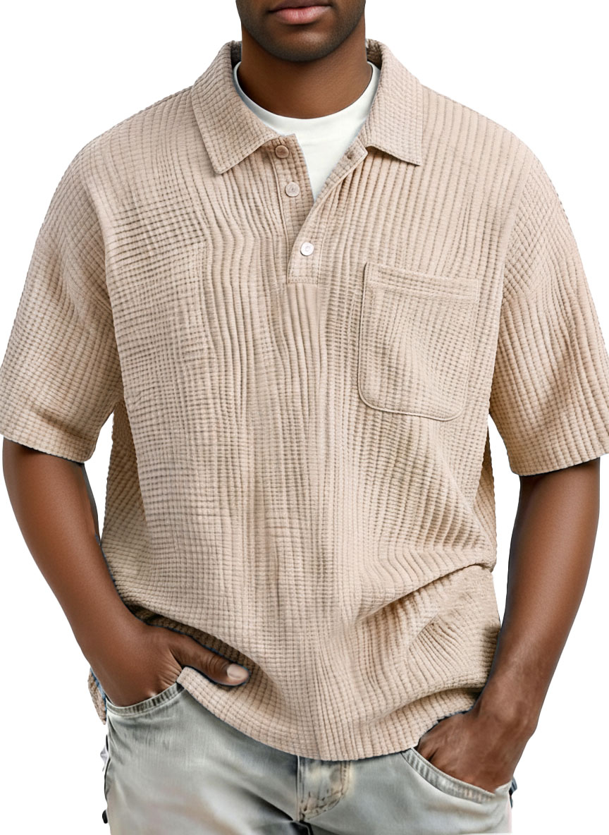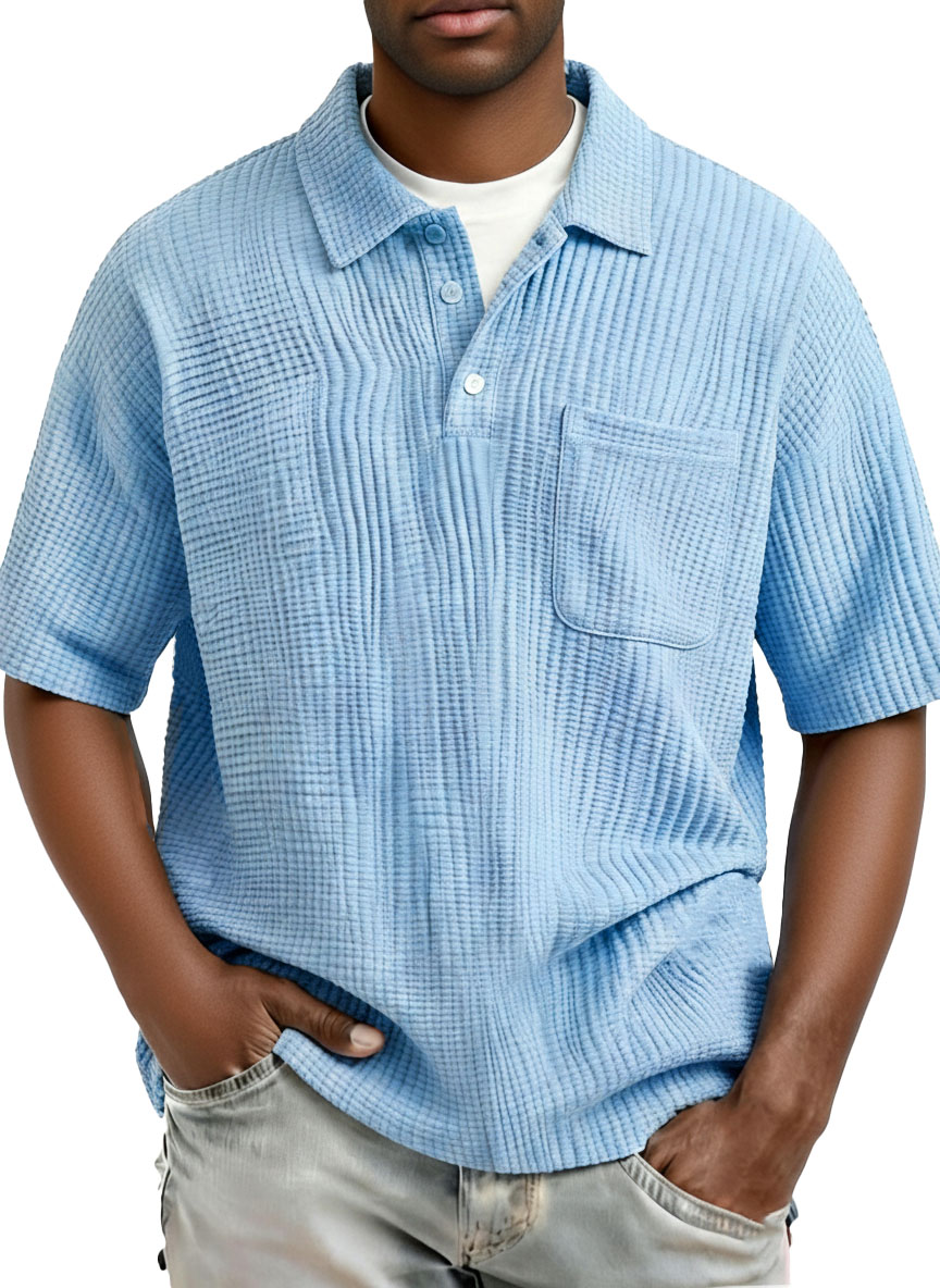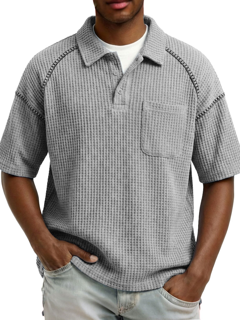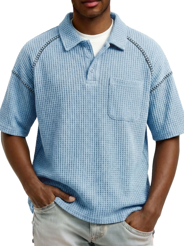 Men's Fashion Retro Waffle Fabric Collared Short-Sleeve Polo Shirt$38.99 USD -