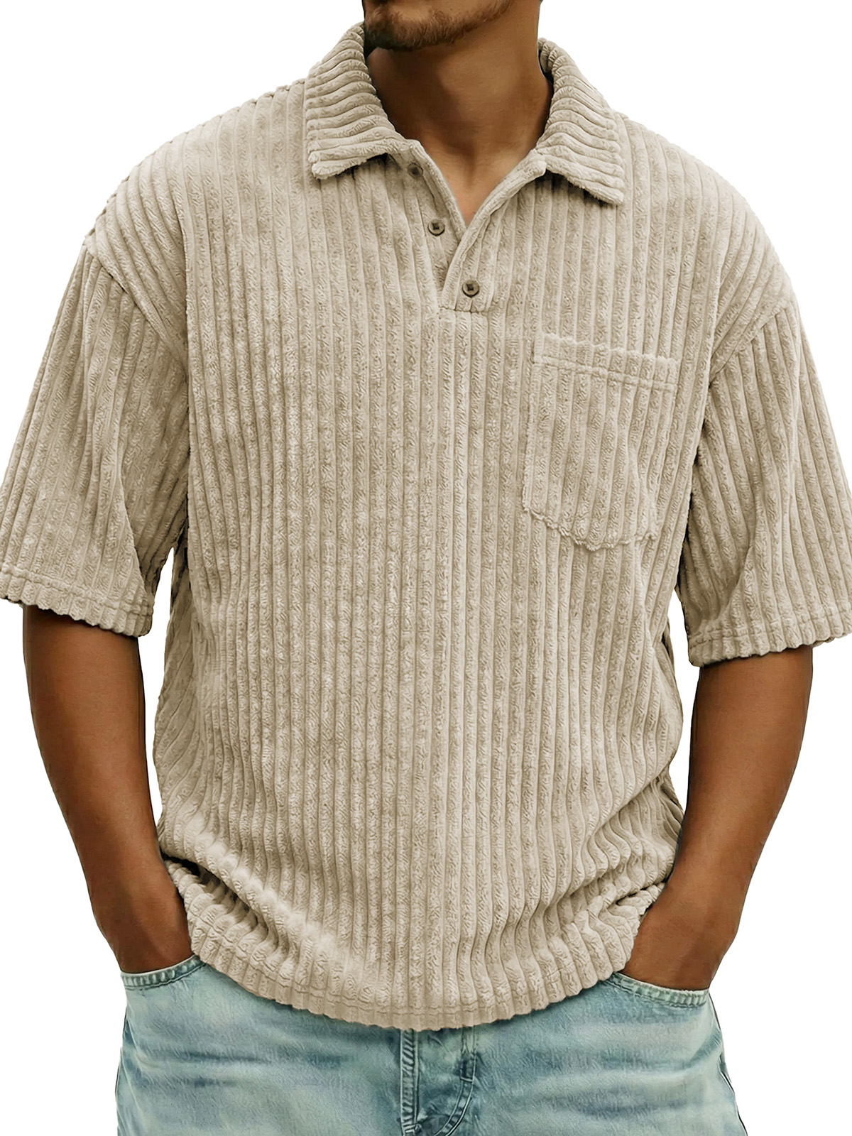 Men's Retro Corduroy Raglan Sleeve Short Sleeve Polo Shirt$38.99 USD -