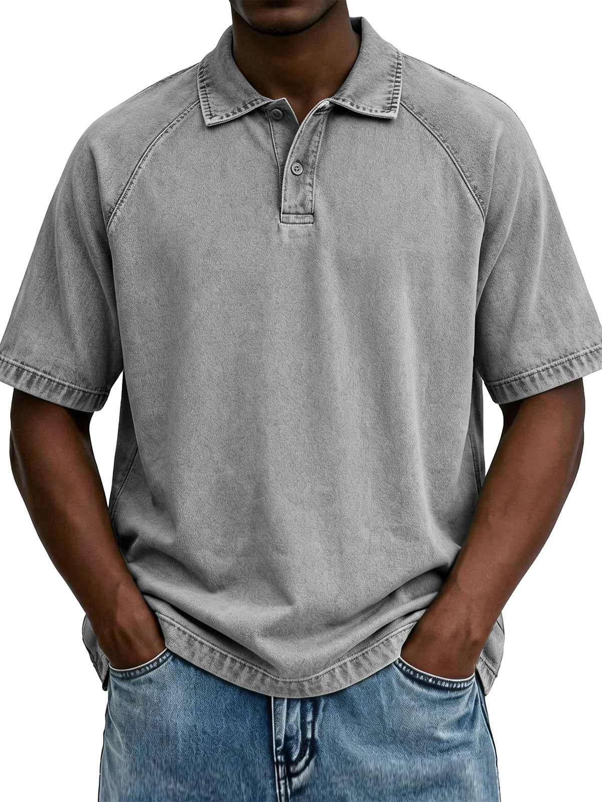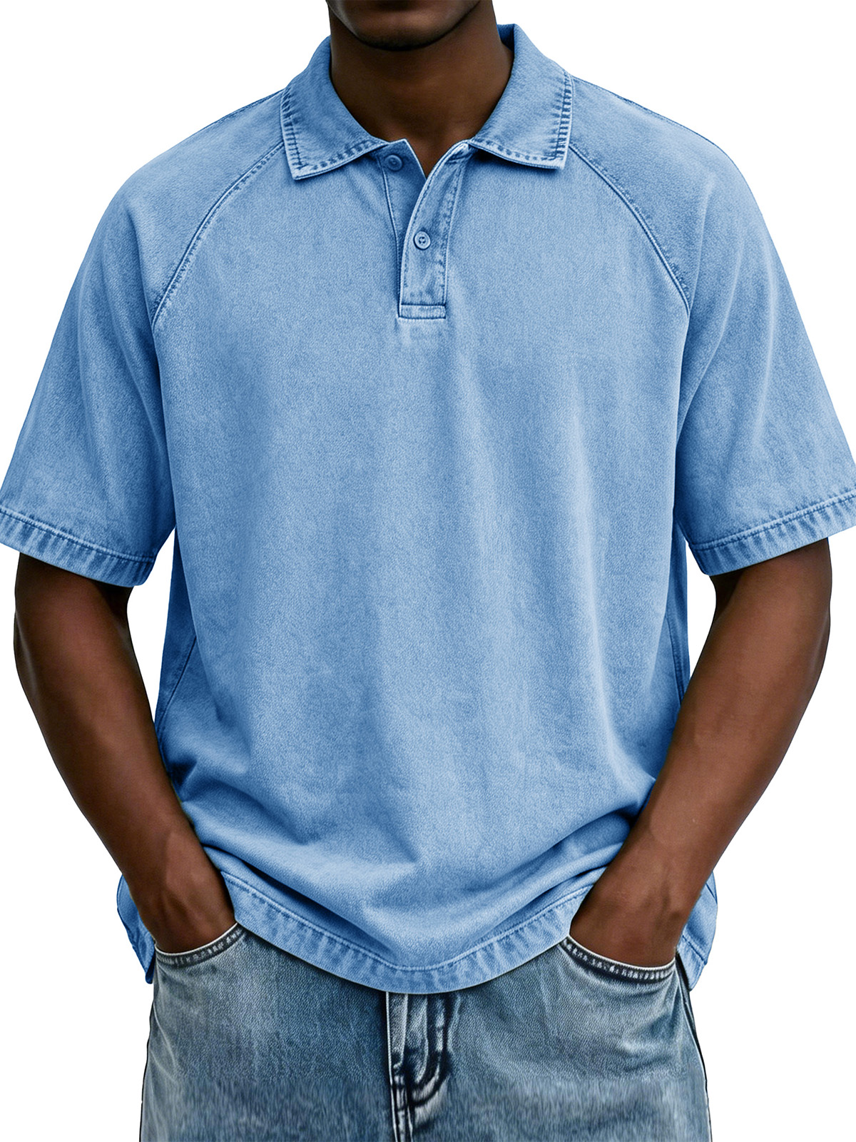Men's Fashionable Casual Waffle Fabric Raglan Loose-Fit Collar Polo Shirt$42.99 USD -