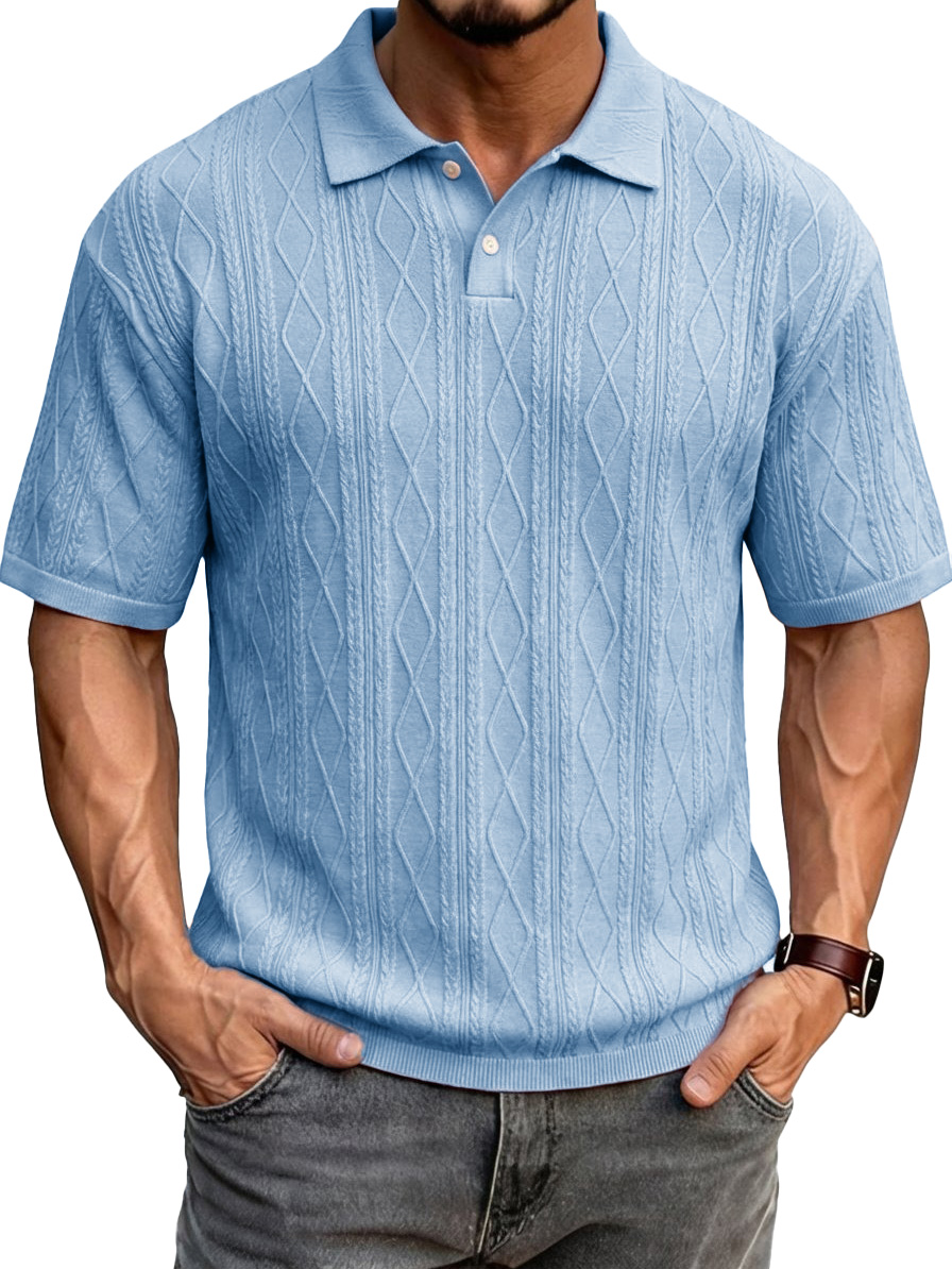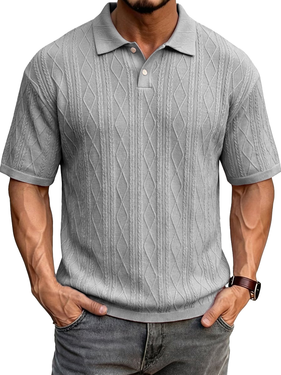 Men's Fashionable Casual Jacquard Fabric Collared Short-Sleeve Polo Shirt$37.99 USD -