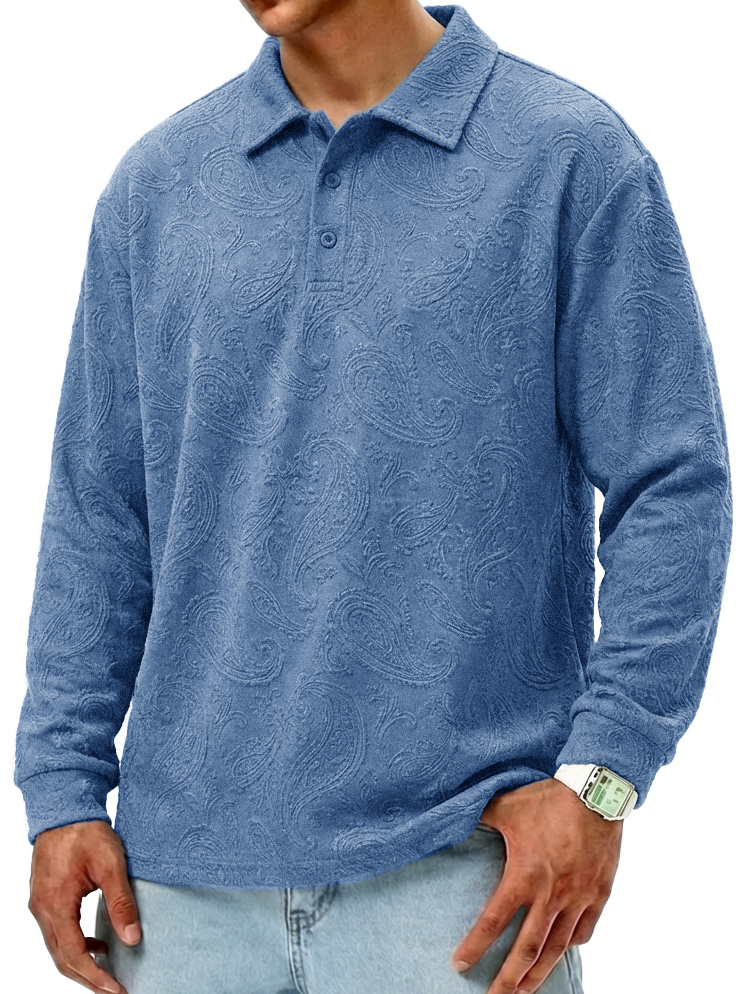 Men's Fashionable Retro Paisley Fabric Loose-Fit Collar Polo Shirt$42.99 USD -