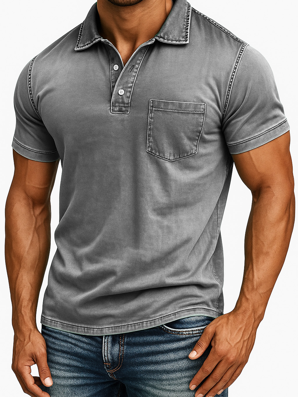 Men's Fashion Casual Retro Washed Short-sleeved Lapel Pocket Polo Shirt$39.99 USD -