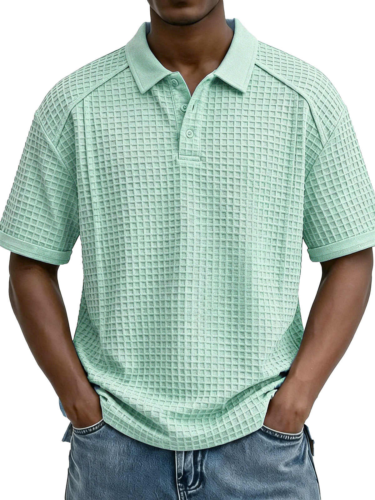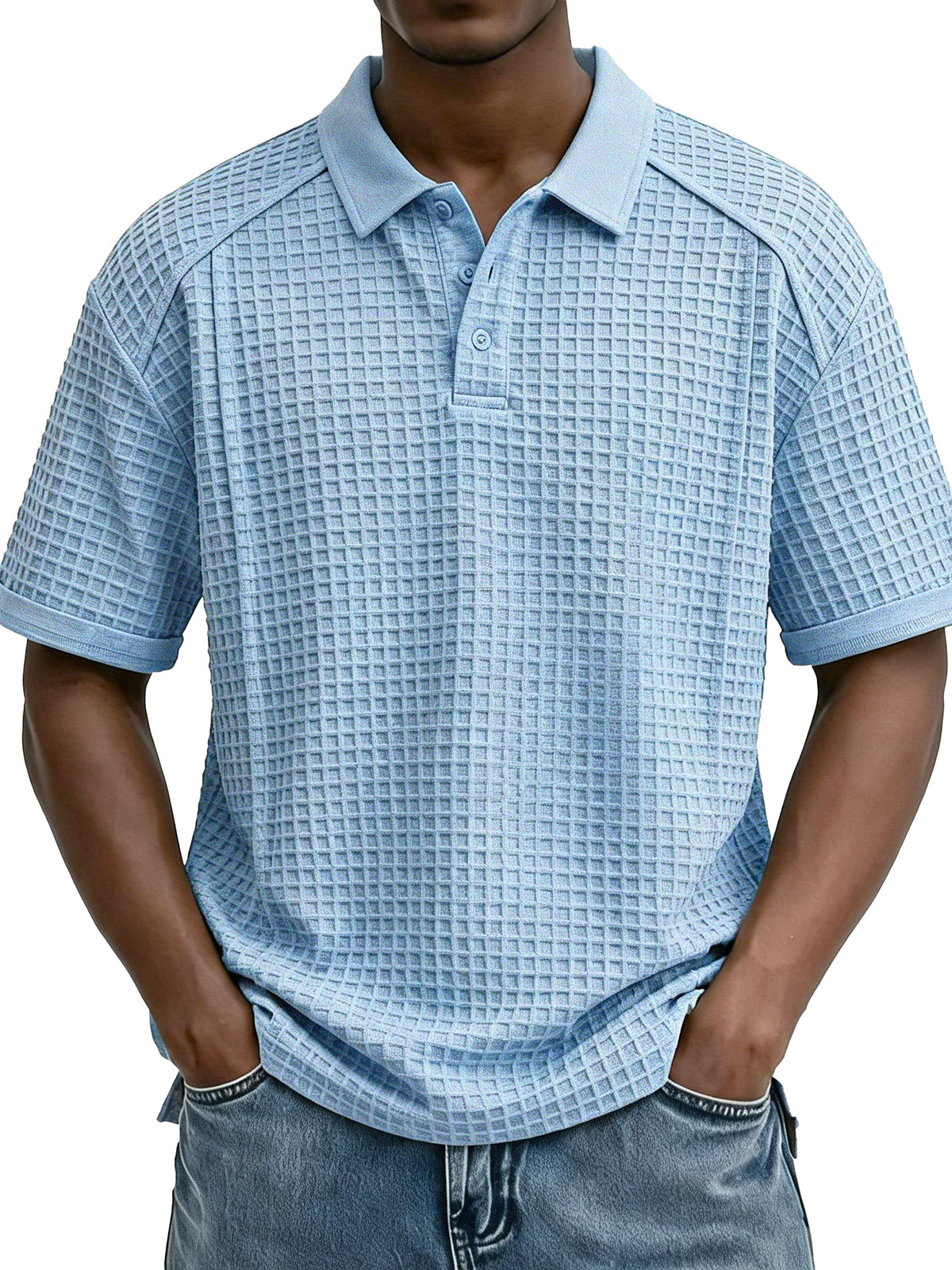Men's Fashion Retro Waffle Fabric Collared Short-Sleeve Polo Shirt$38.99 USD