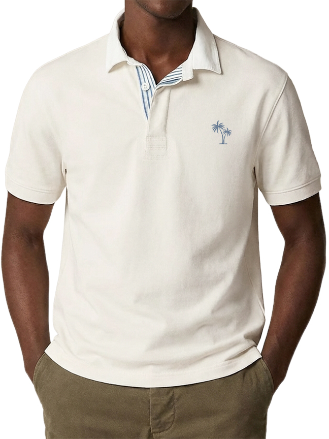 Men's Urban Casual Coconut Tree Stripe Short-Sleeved Polo Shirt$38.99 USD -