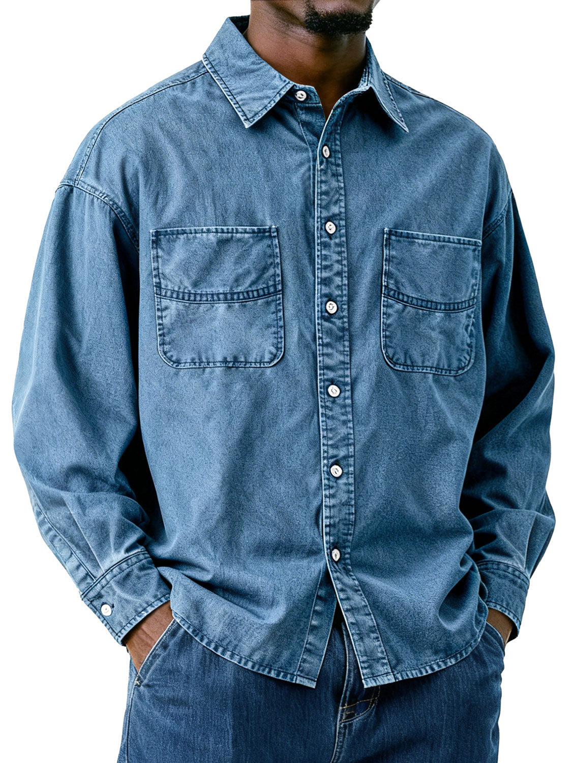 Men's Retro Double Pocket Casual Loose Long-Sleeved Shirt$47.99 USD -