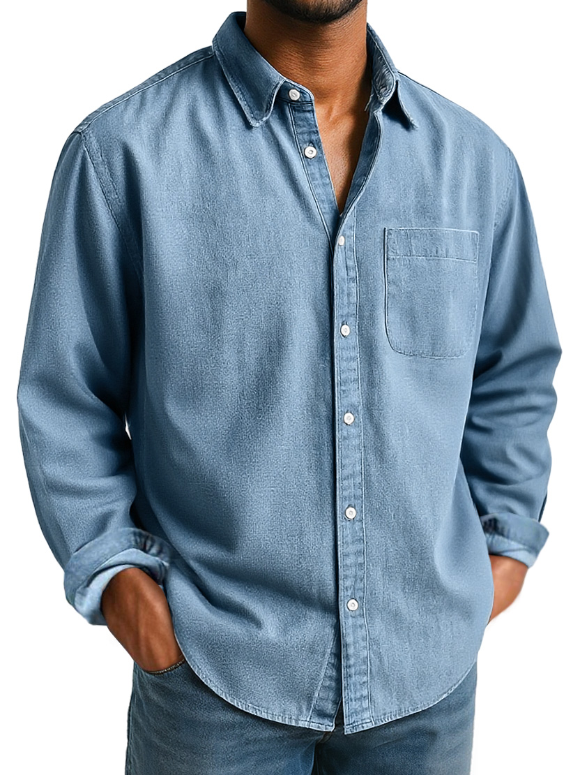 Men's Casual Simple Cotton Lapel Long-Sleeved Shirt$42.99 USD -