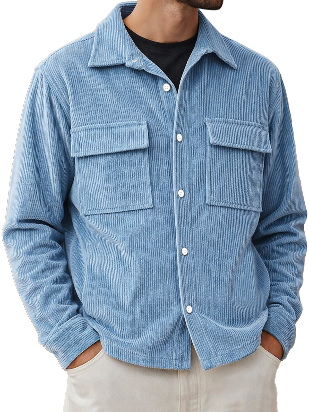 Men's Basic Double-pocket Corduroy Button-down Long-sleeved Shirt$42.99 USD -