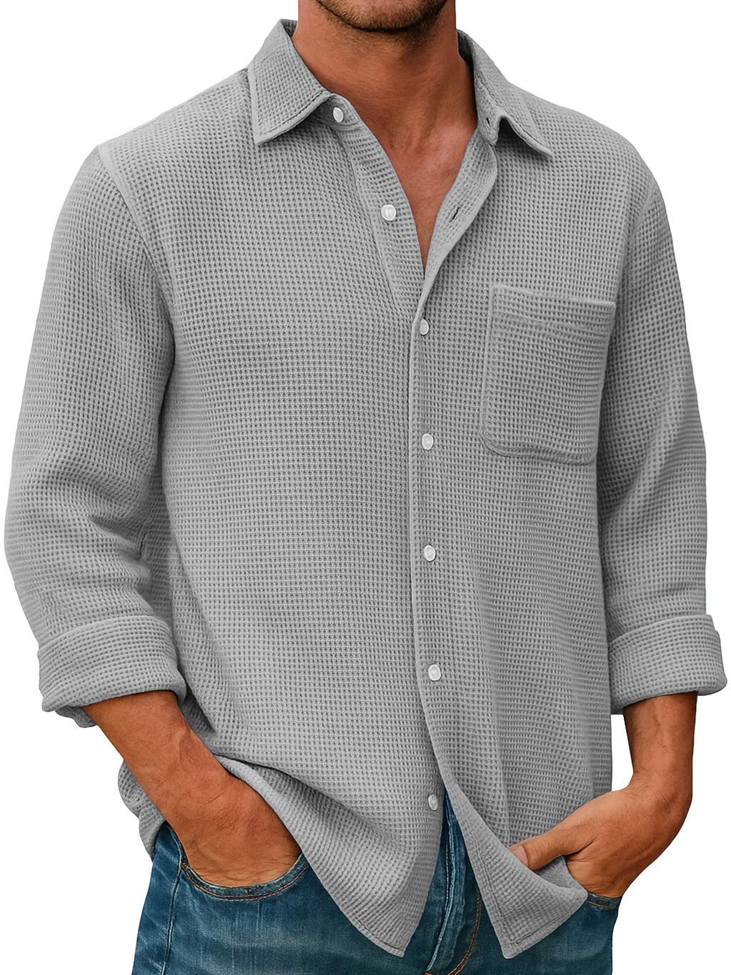 Men's Waffle Everyday Casual Pocket Comfort Long Sleeve Shirt$42.99 USD -