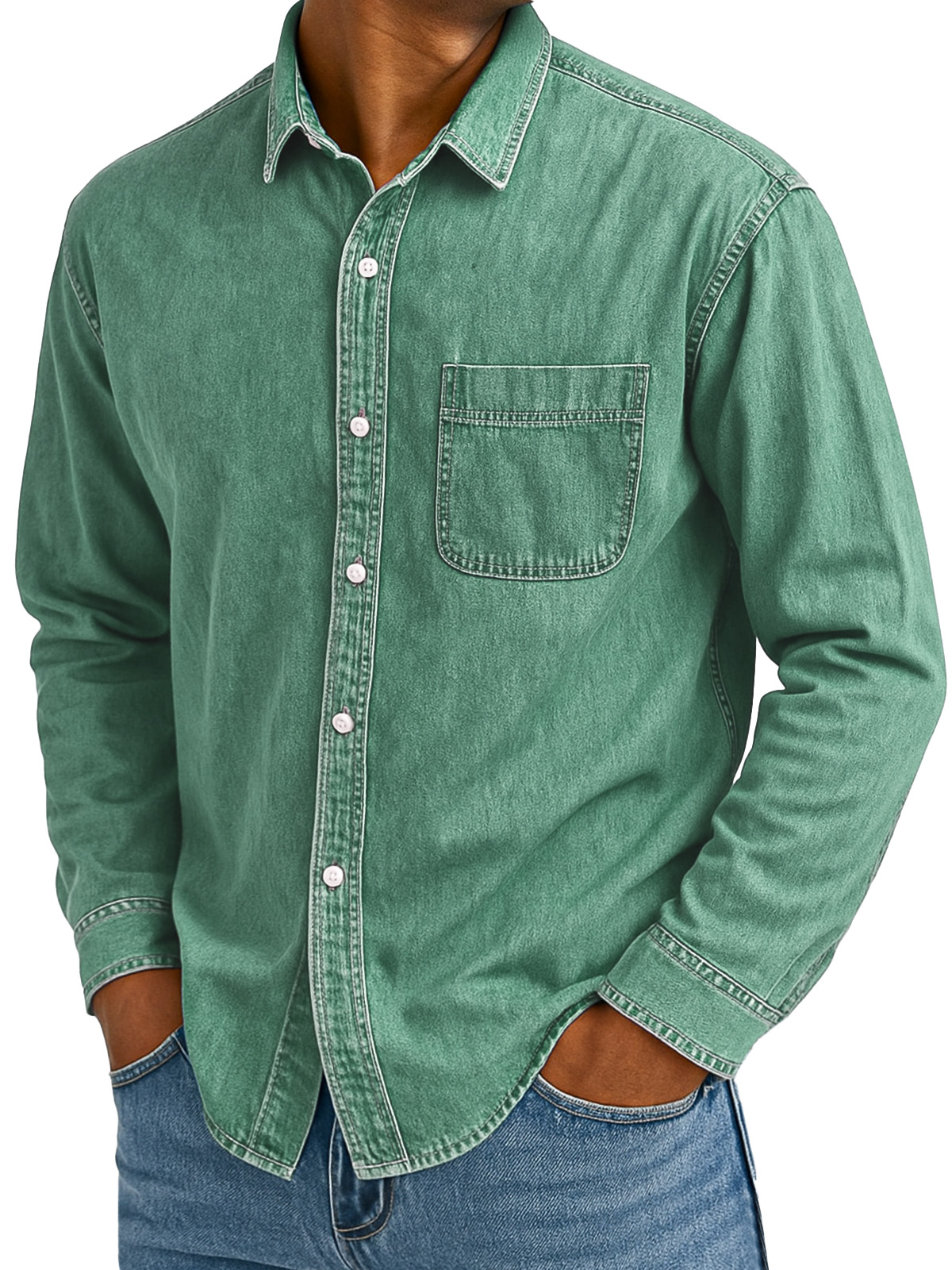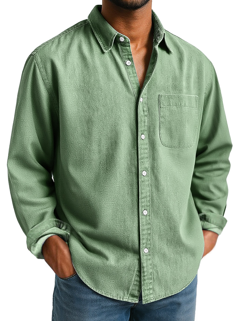 Men's Basic Solid Color Retro Lapel Button-down Long-sleeved Shirt$42.99 USD -
