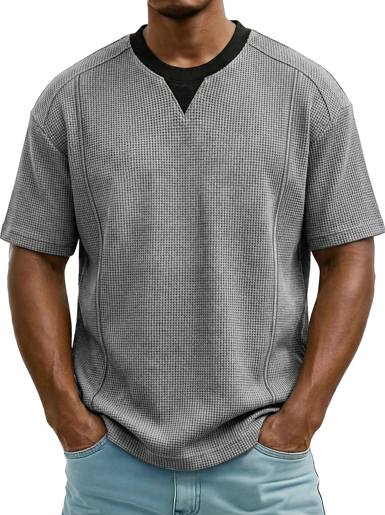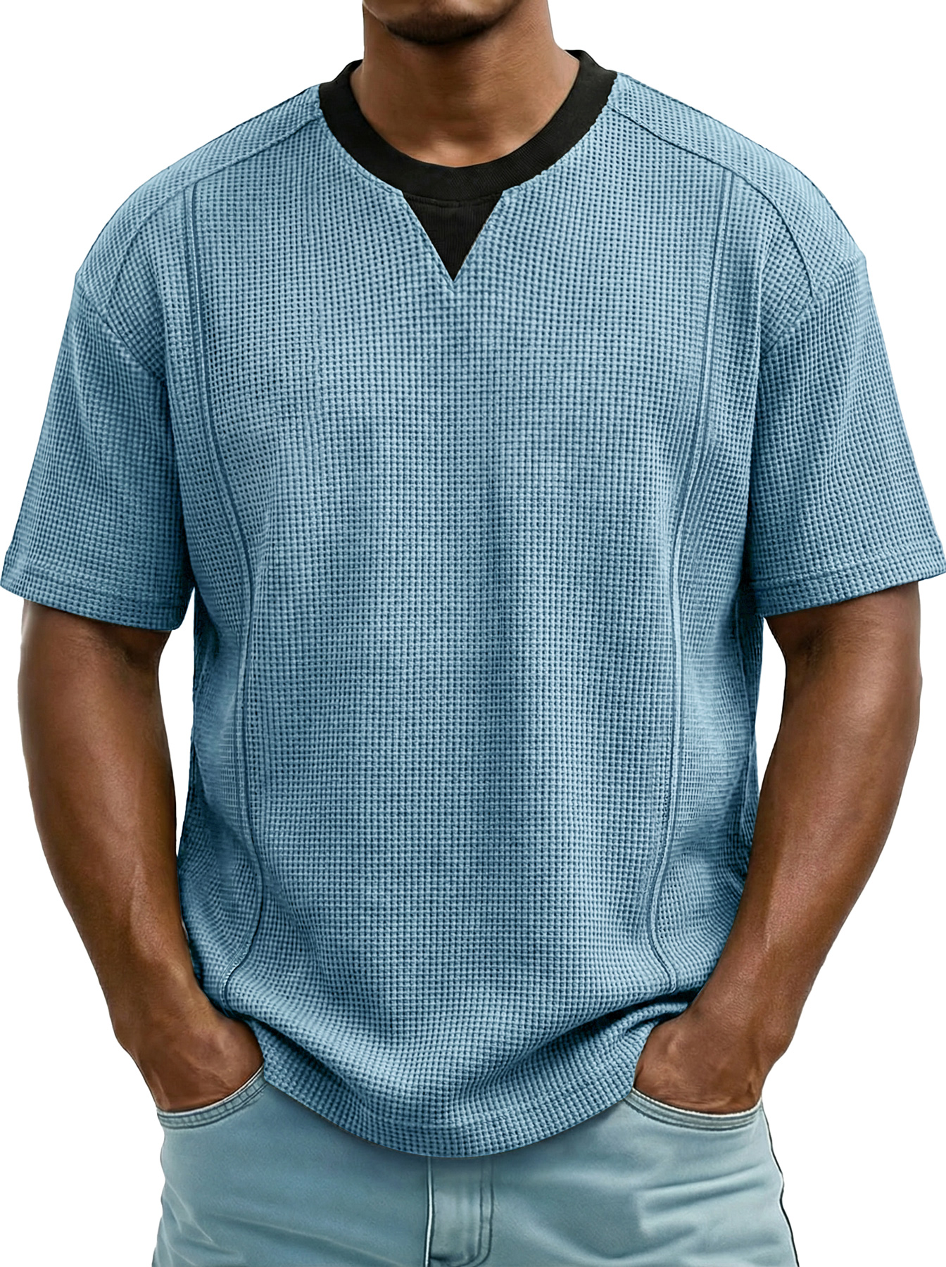 Men's Everyday Waffle Color-block Casual Short-sleeved T-shirt$38.99 USD -