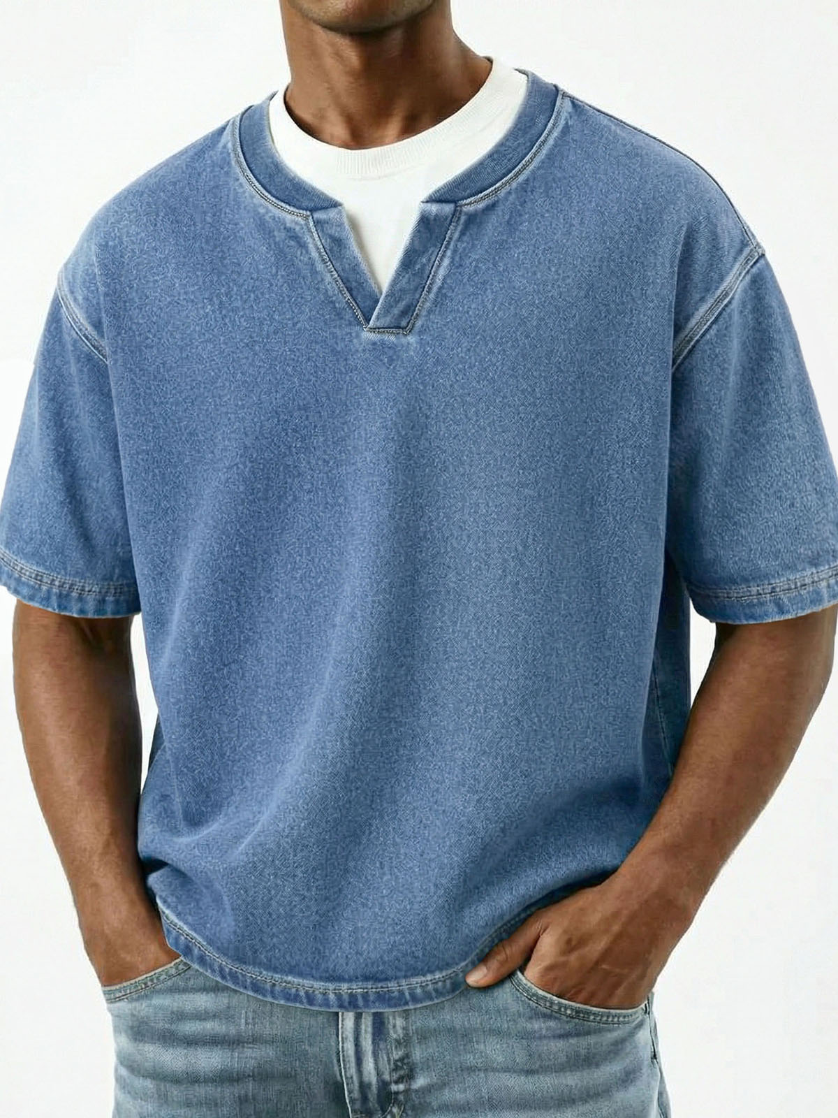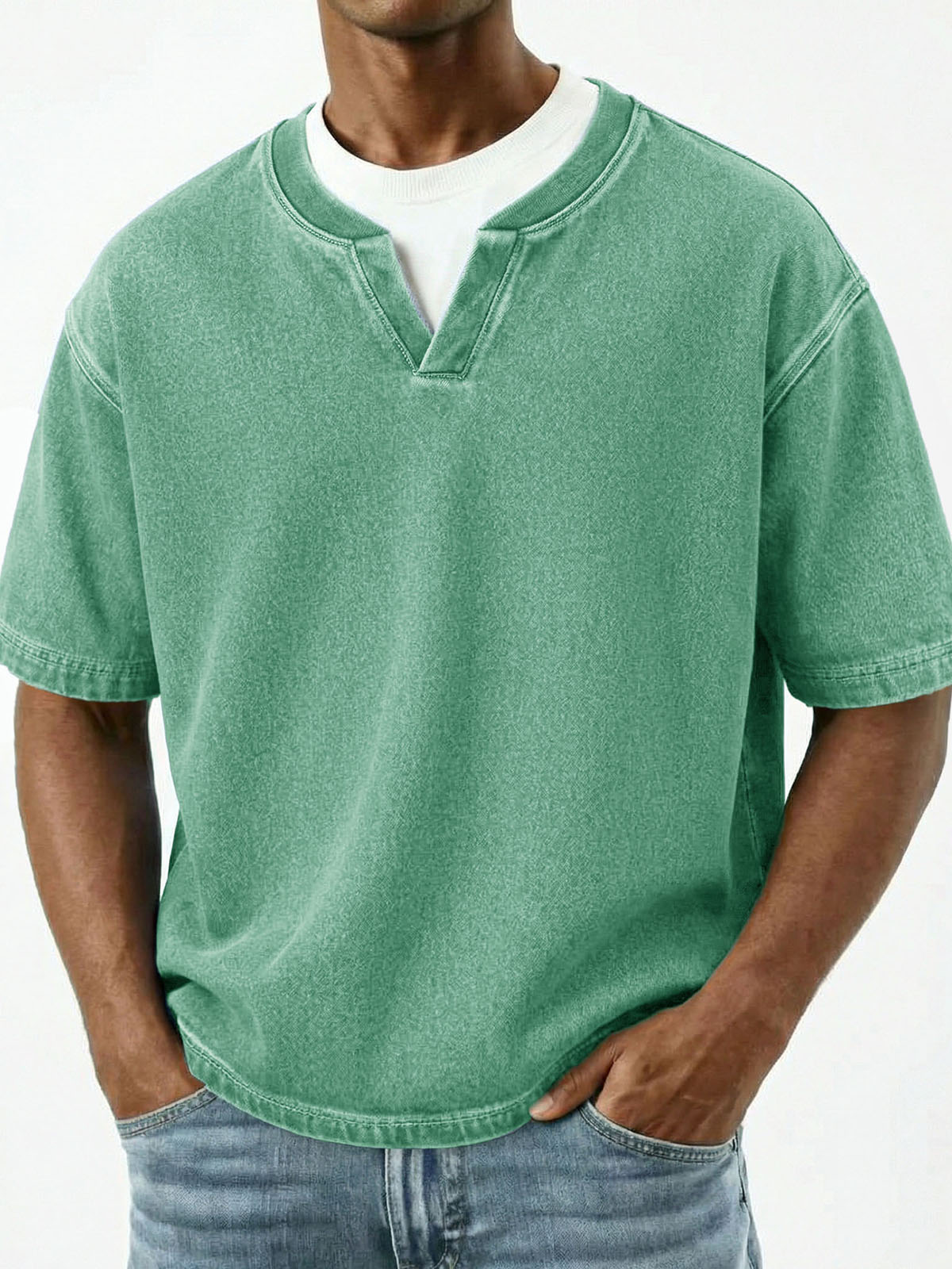 Men's Retro Solid Color V-neck Short Sleeve T-shirt$39.99 USD -