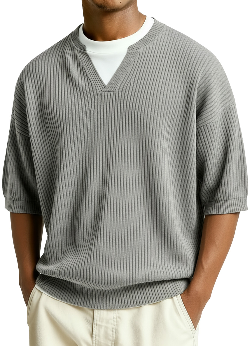 Men's Everyday Ribbed Zip-up Short-sleeved Casual T-shirt$38.99 USD -