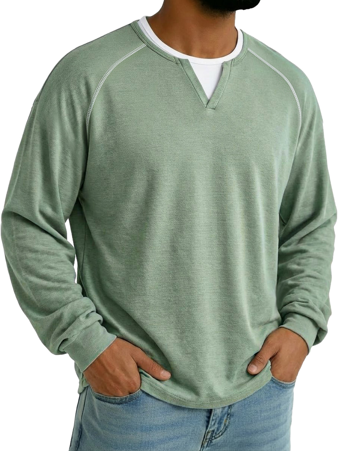 Men's Everyday Casual Comfortable Long-sleeved T-shirt With A Faux Two-piece Design And Raglan Sleeves$42.99 USD -