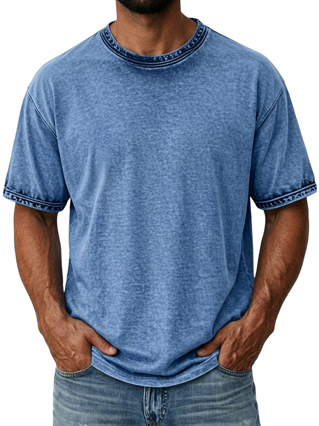 Men's Retro Distressed Pure Cotton Washed Casual Short-Sleeve T-Shirt$37.99 USD -