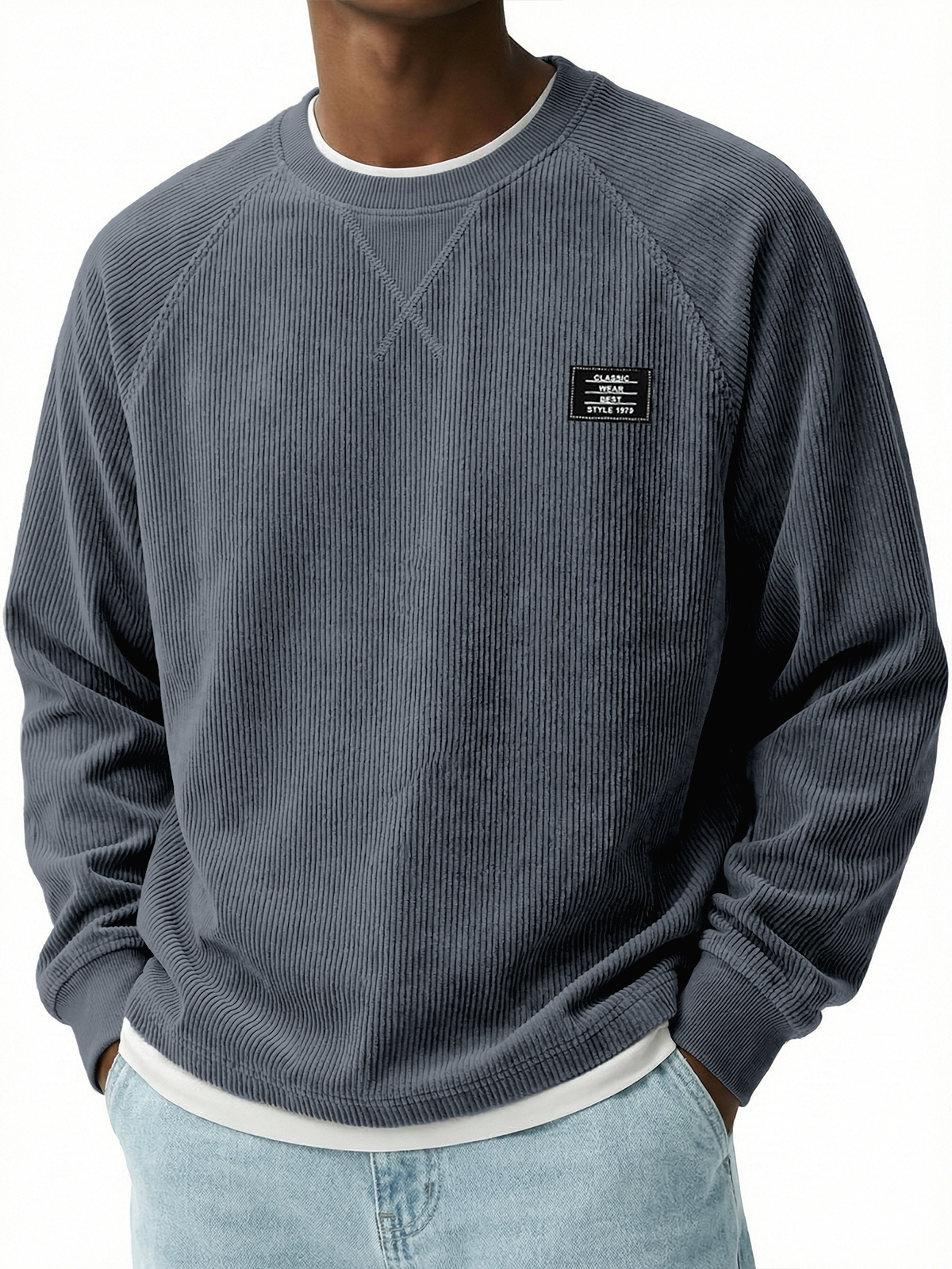 Men's Stylish Corduroy Crew Neck Basic Pullover$42.99 USD -